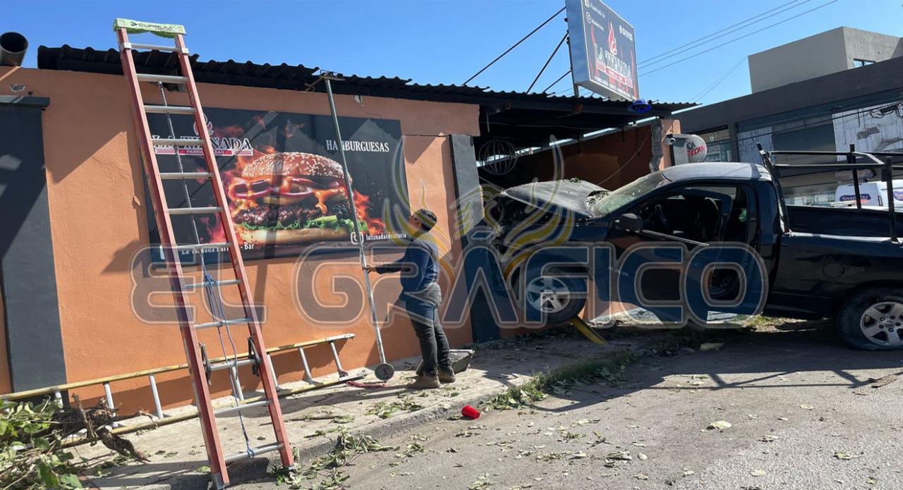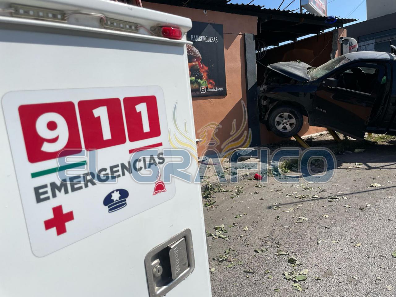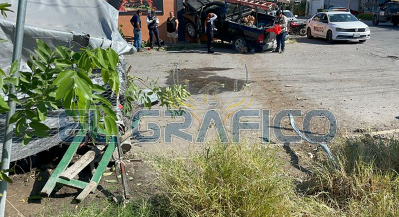 Al continuar avanzando, la camioneta abandonó el terreno que se encontraba circulado con la malla ciclónica, y se impactó contra un carretón de flautas y gorditas.