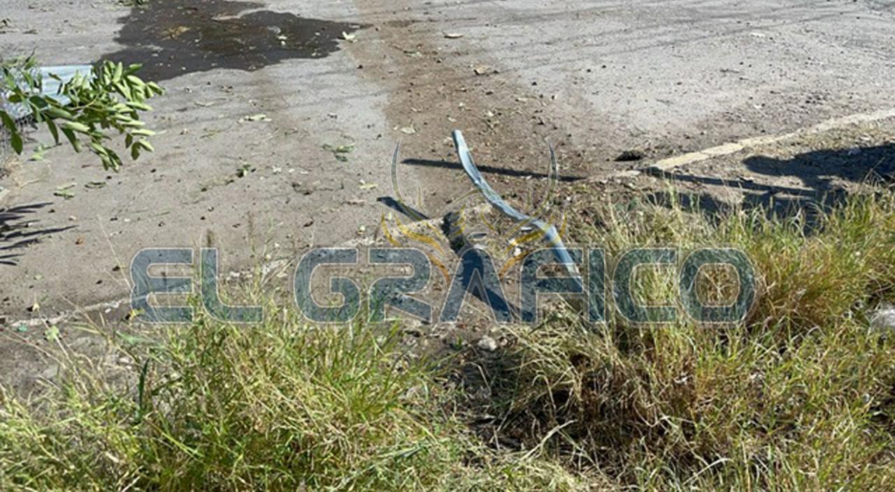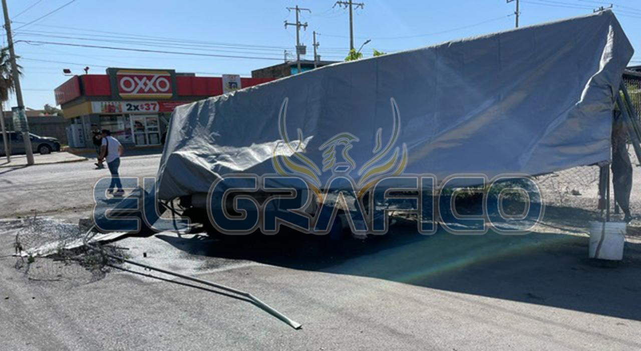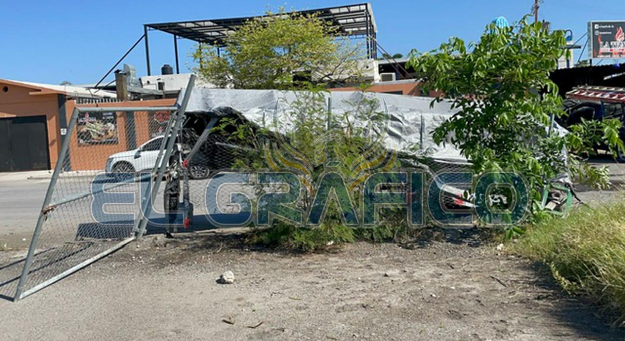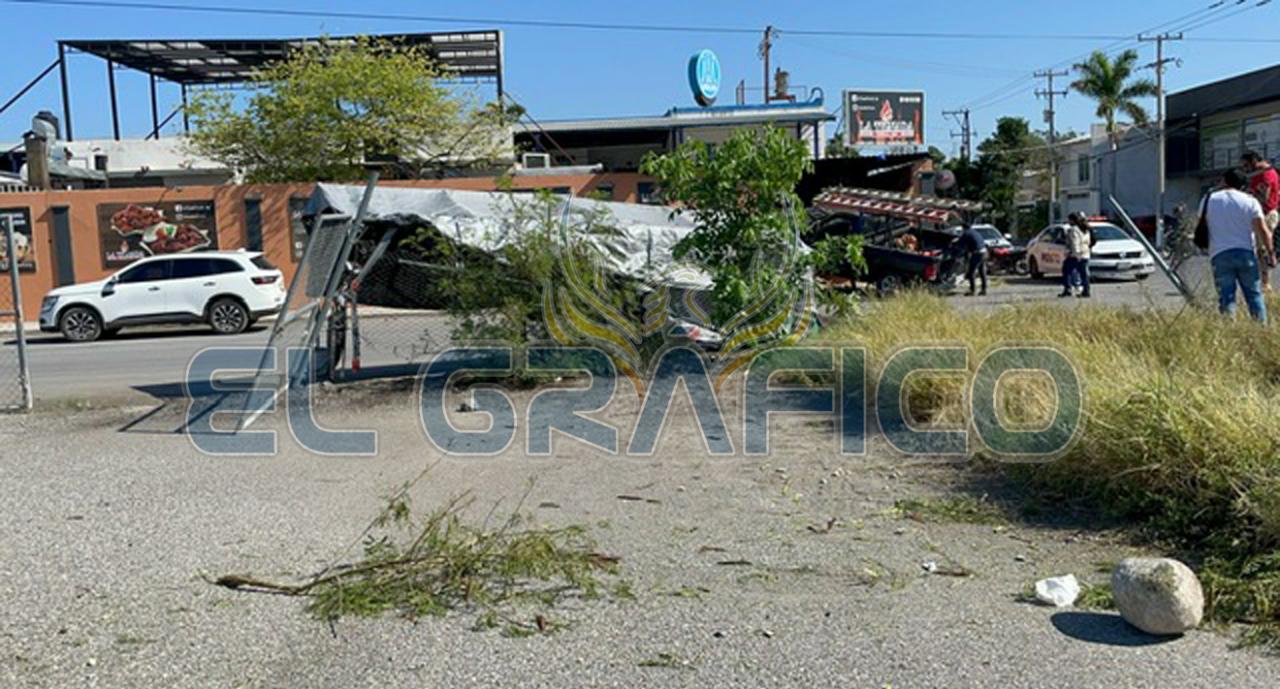 Al continuar avanzando, la camioneta abandonó el terreno que se encontraba circulado con la malla ciclónica, y se impactó contra un carretón de flautas y gorditas.