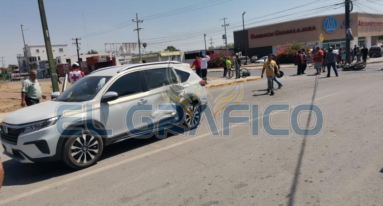 Al llegar al crucero con la calle Nicolás Bravo, al paso del motociclista se atravesó una camioneta de la marca Honda, cuyo conductor ignoró un disco metálico de alto cuando circulaba en sentido de oriente a poniente.