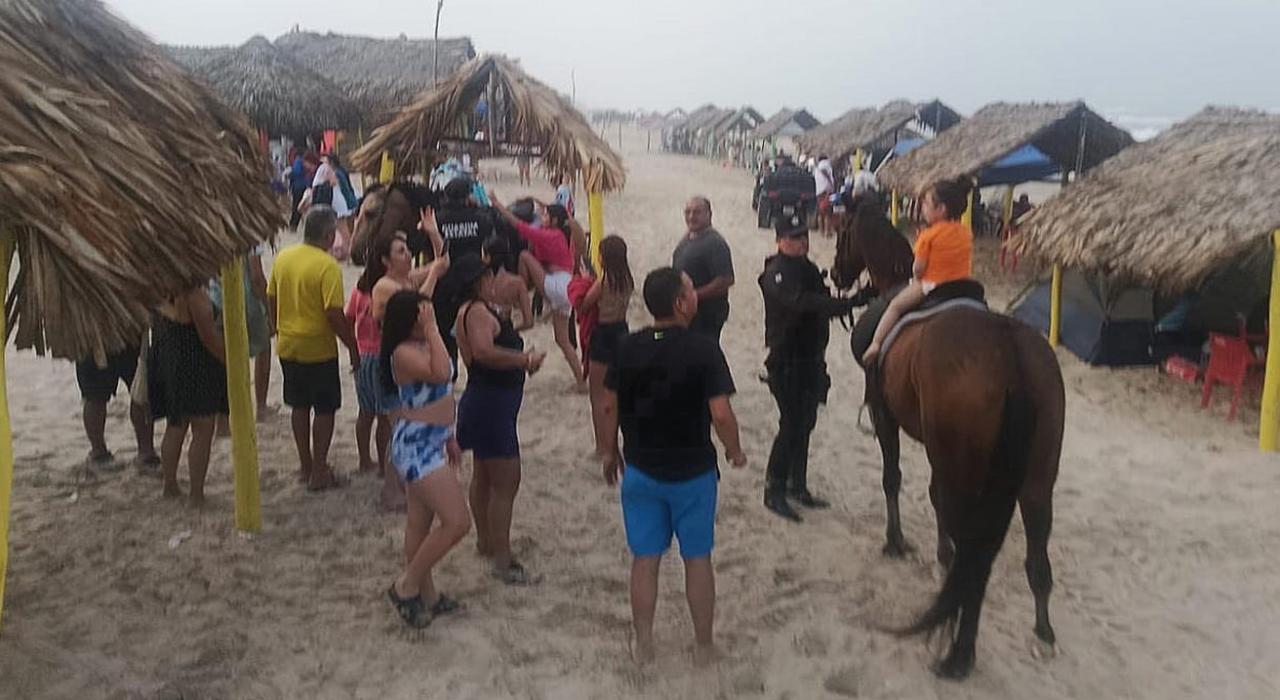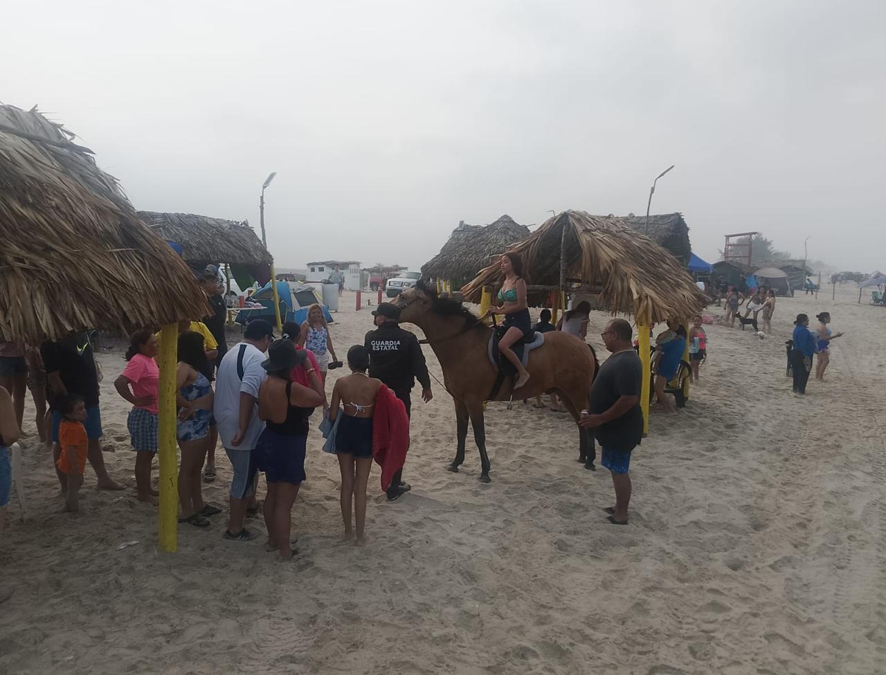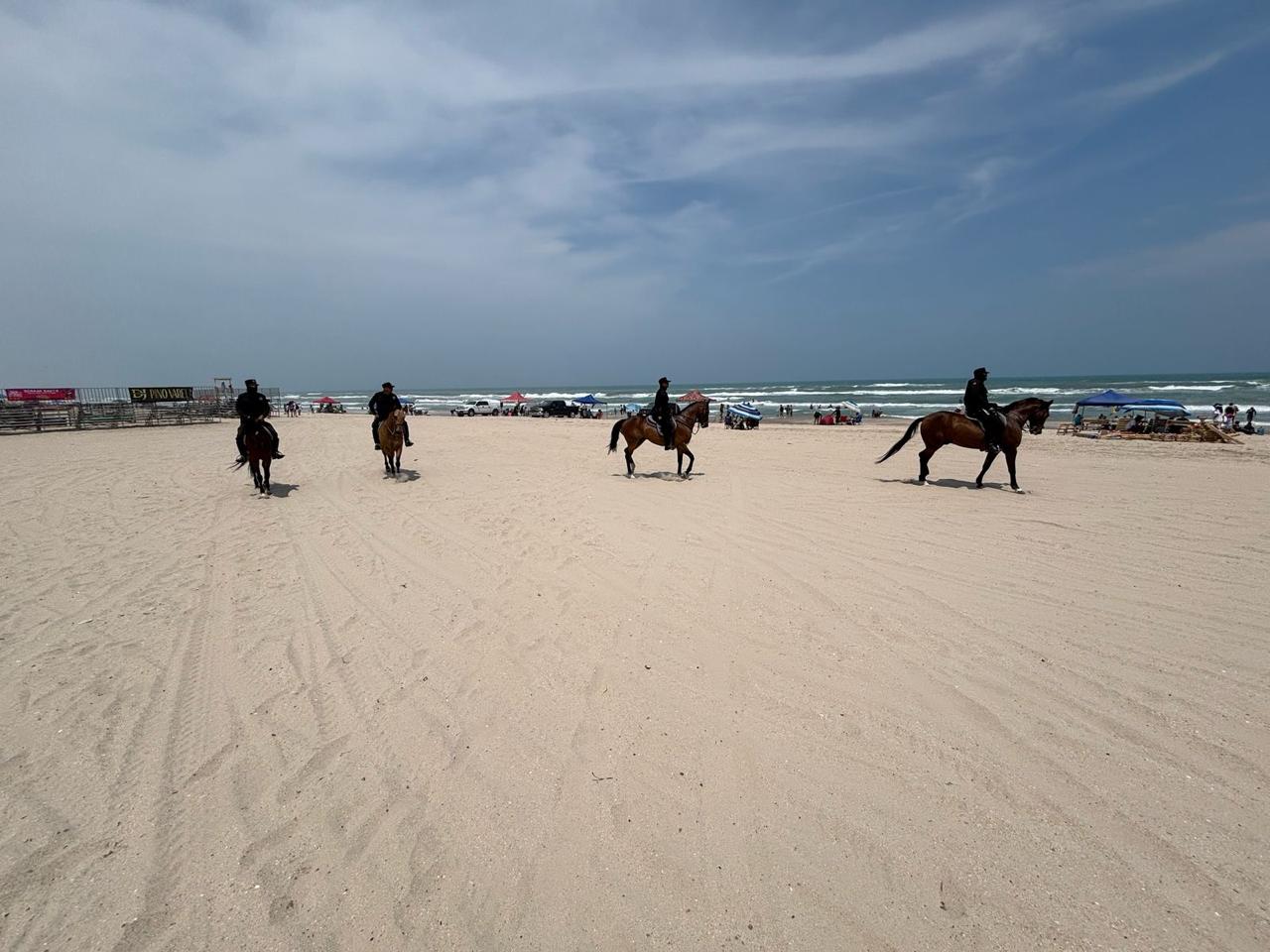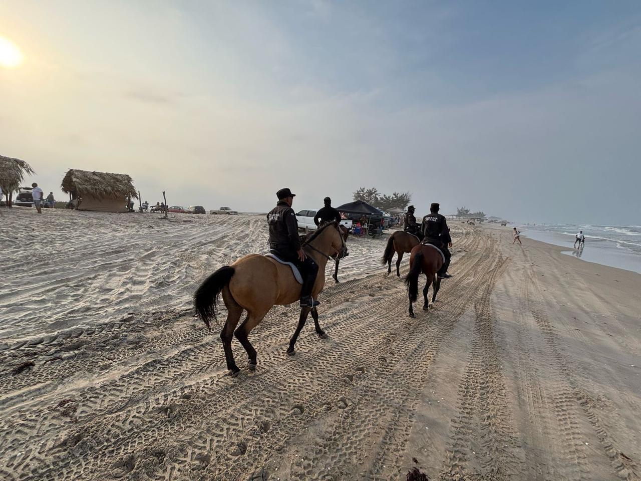 Soto la Marina, Tamaulipas.- Como parte del Operativo Semana Santa Segura, personal del Agrupamiento Montado de la Guardia Estatal mantiene la presencia y vigilancia en La Pesca.