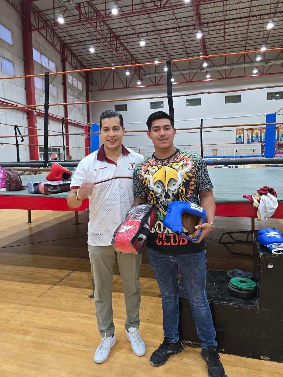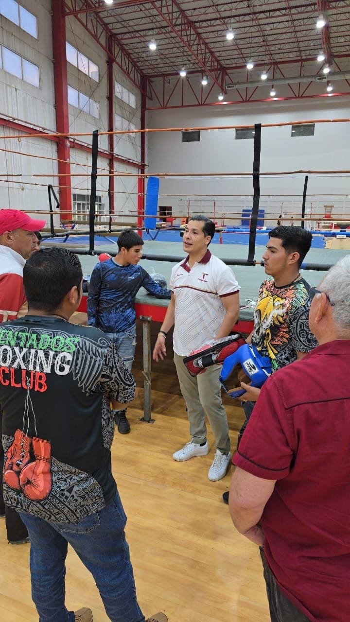 Durante su recorrido, Virués Lozano entregó material deportivo al equipo de boxeo, reconociendo el esfuerzo de quienes han logrado su clasificación a la Olimpiada Nacional.
