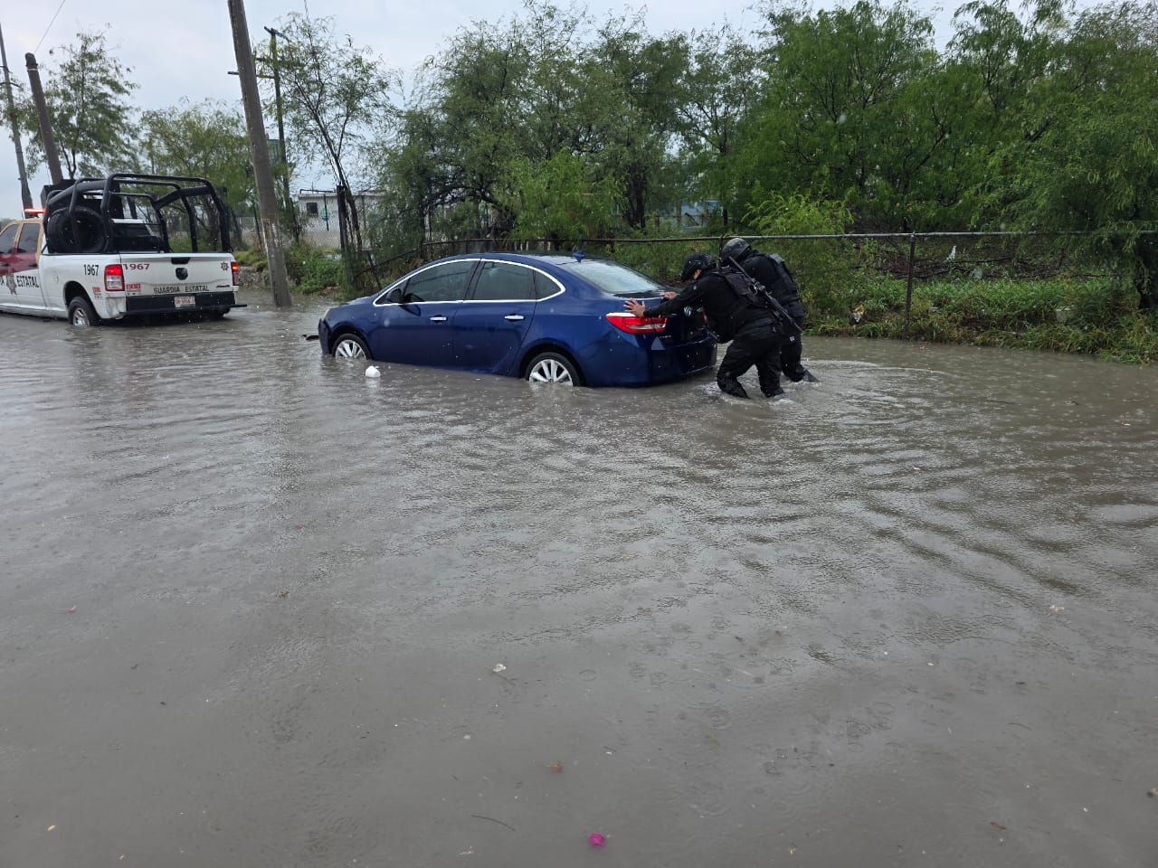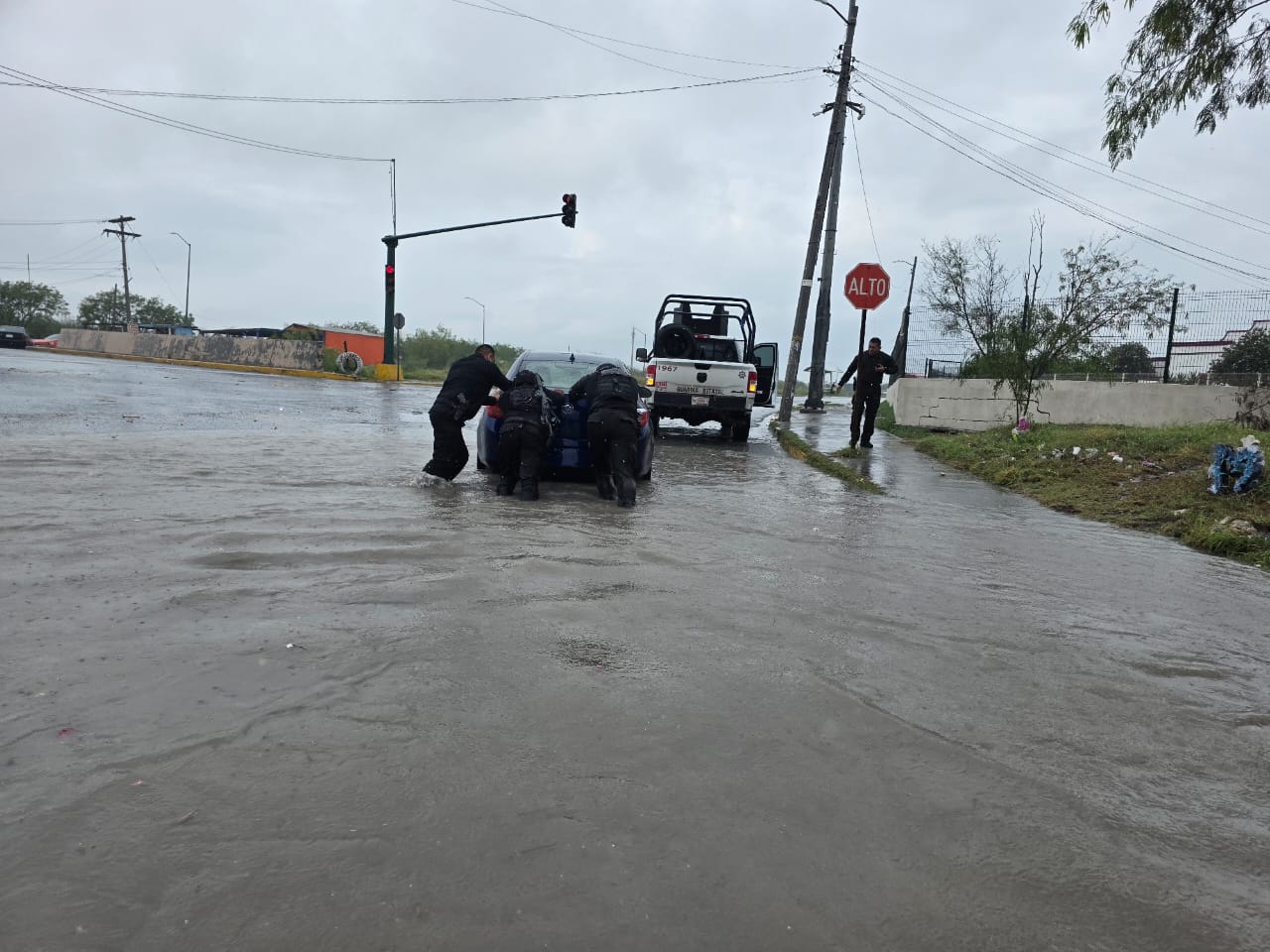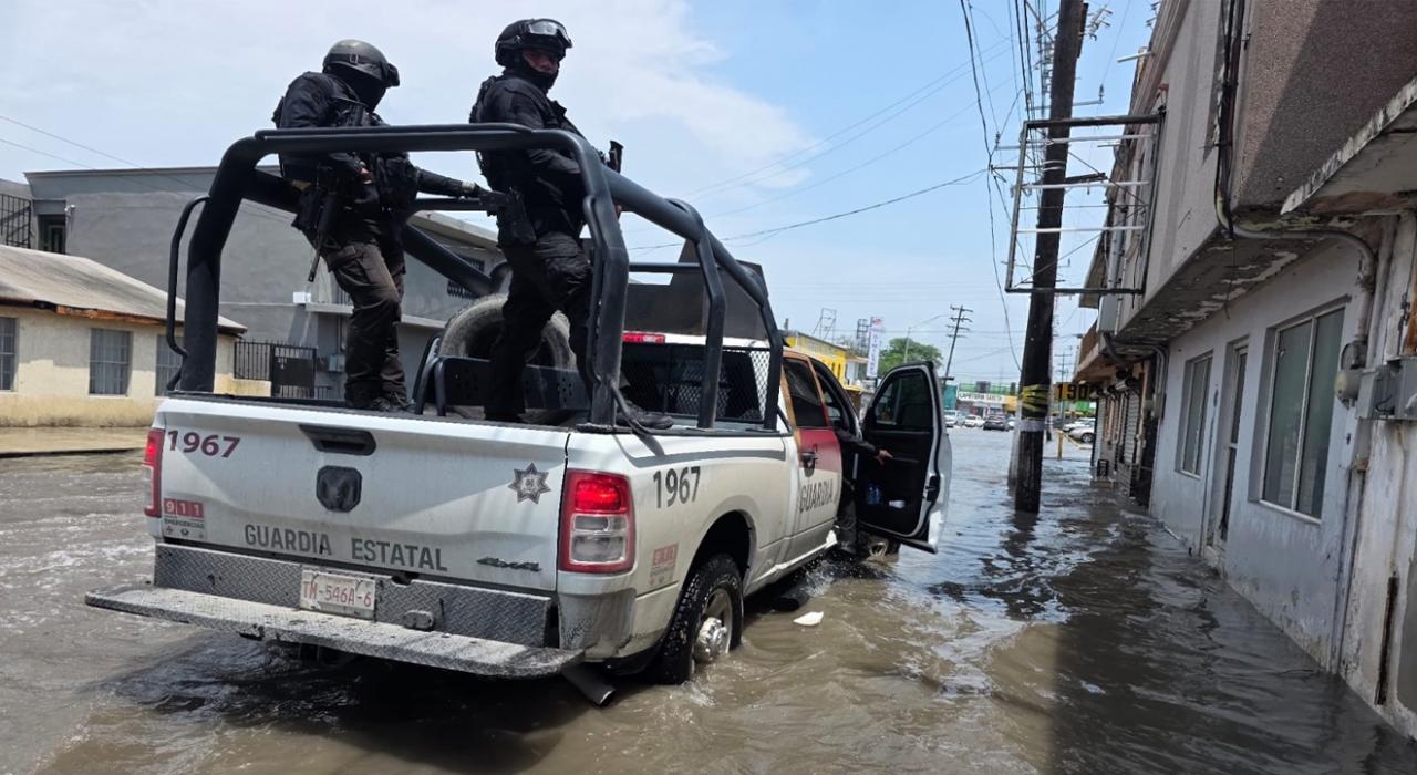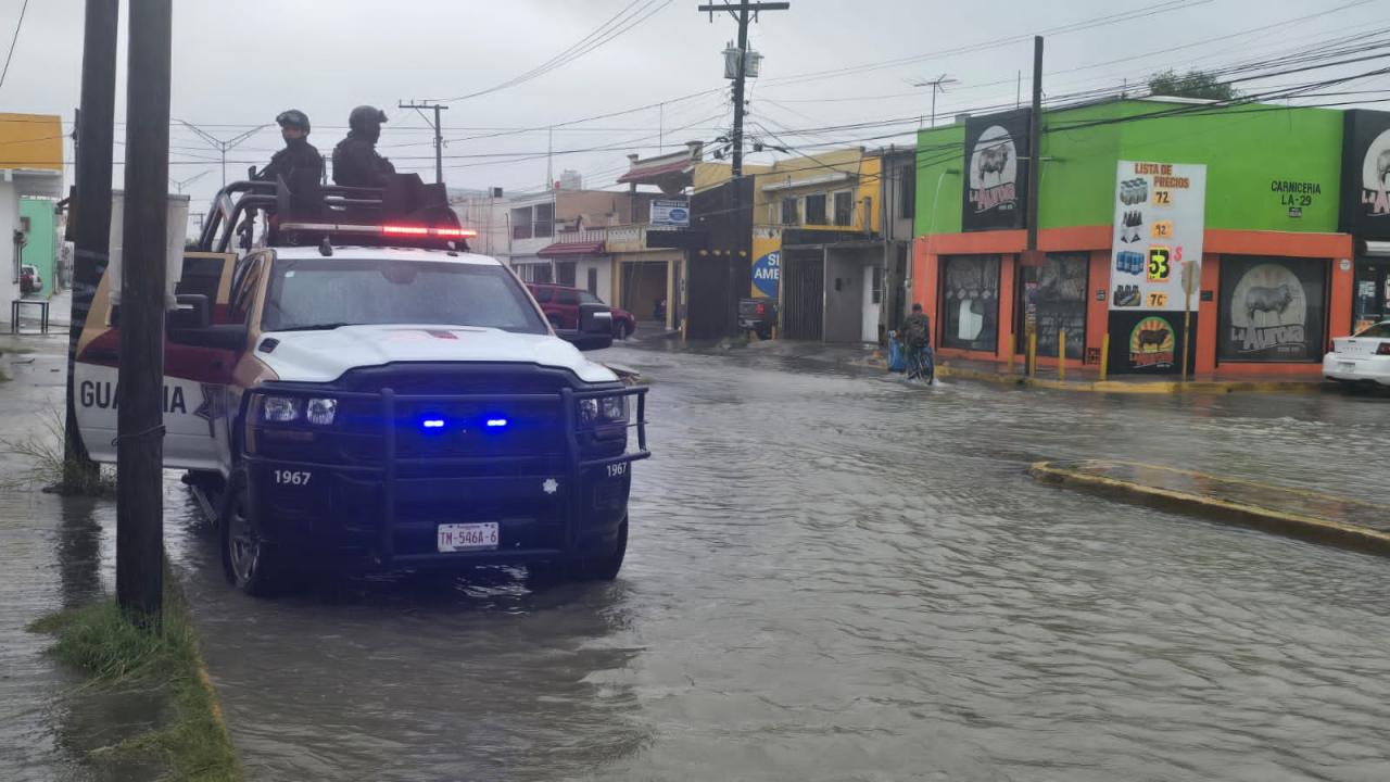 Matamoros, Tamaulipas.- En respuesta a las fuertes lluvias registradas en Matamoros debido al ingreso de una tormenta, elementos de la Guardia Estatal activaron el Plan Tamaulipas con el objetivo de brindar apoyo a la población afectada por encharcamientos e inundaciones en algunos sectores.