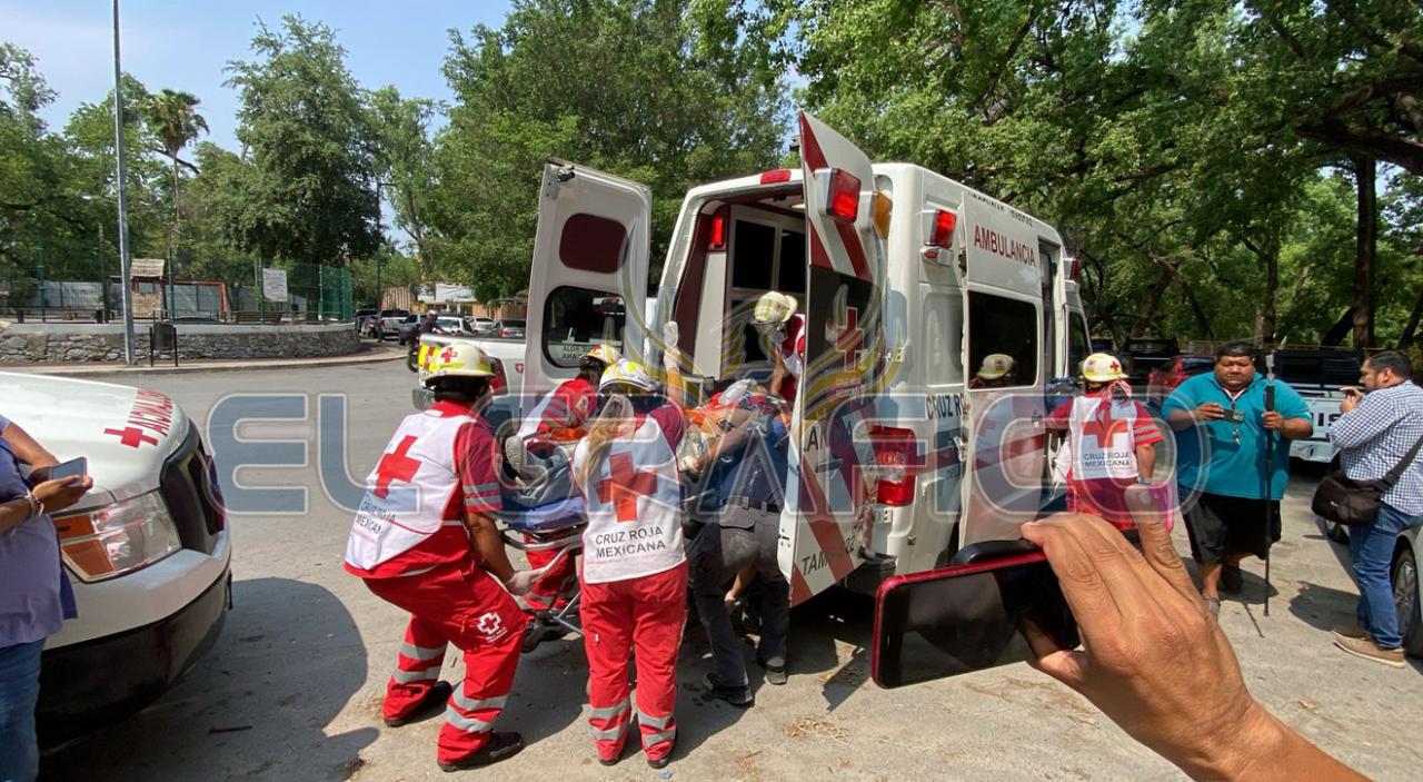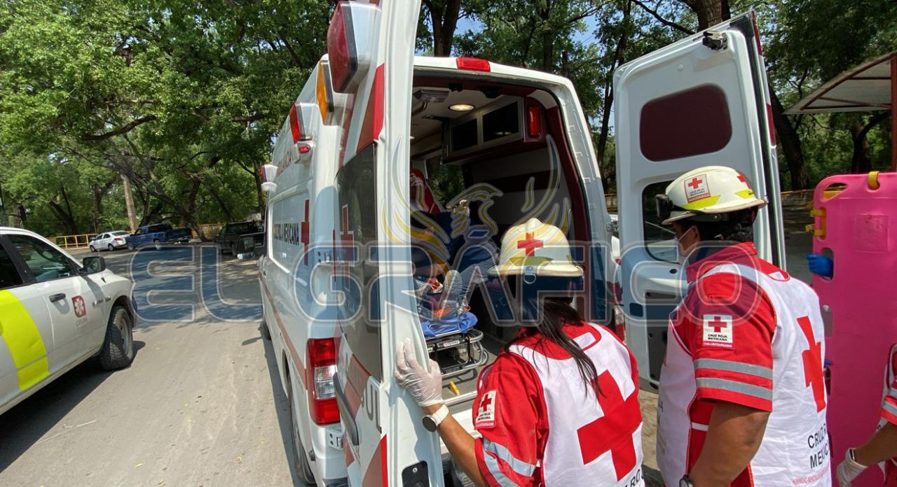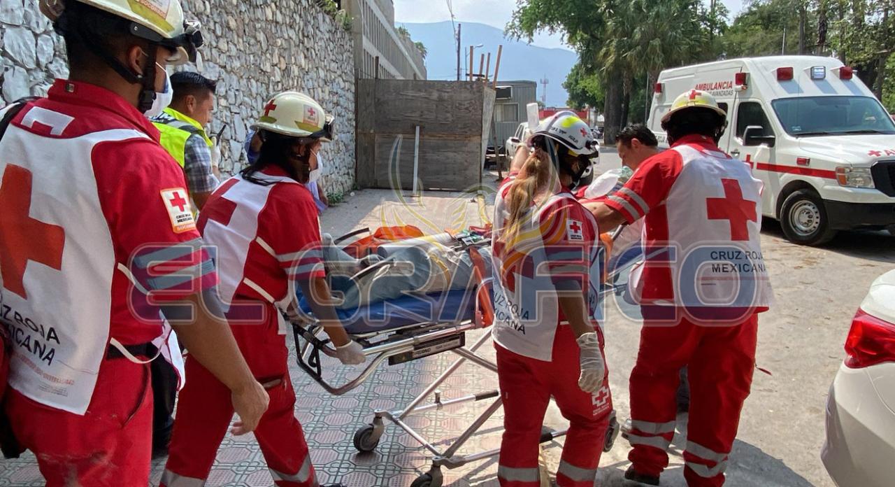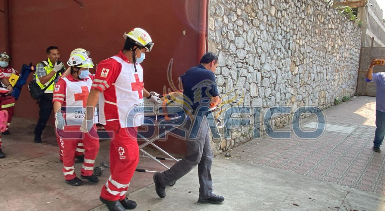 Después de varias maniobras para inmovilizar al trabajador lesionado, paramédicos de Cruz Roja Mexicana lo trasladaron al Instituto Mexicano del Seguro Social.