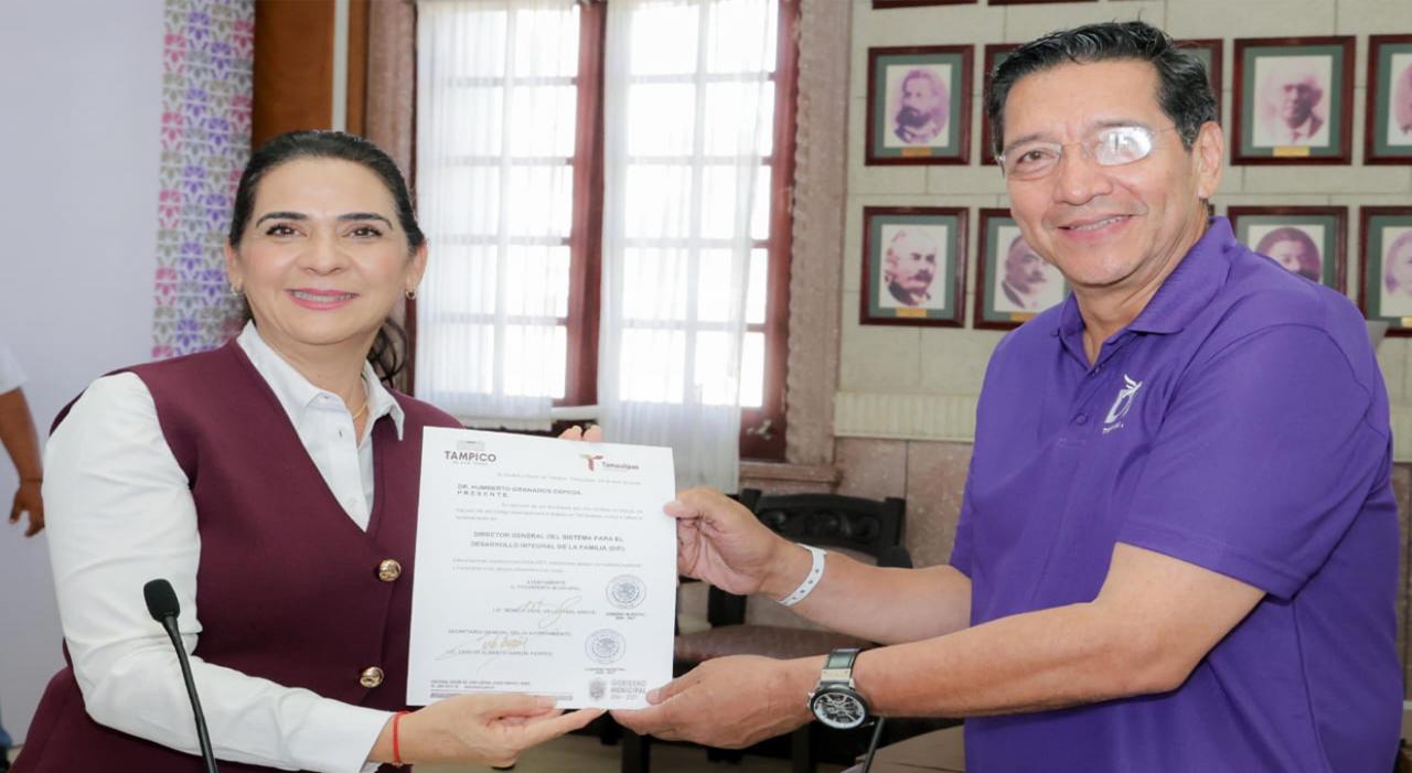 Con el propósito de fortalecer los programas y acciones de asistencia social que desarrolla el Sistema DIF Tampico en beneficio de la población, la Presidenta municipal, Mónica Villarreal Anaya, tomó protesta al doctor Humberto Granados Cepeda como nuevo director general del organismo durante la Vigésima Primera Sesión Ordinaria de Cabildo, efectuada este martes en el Palacio Municipal.