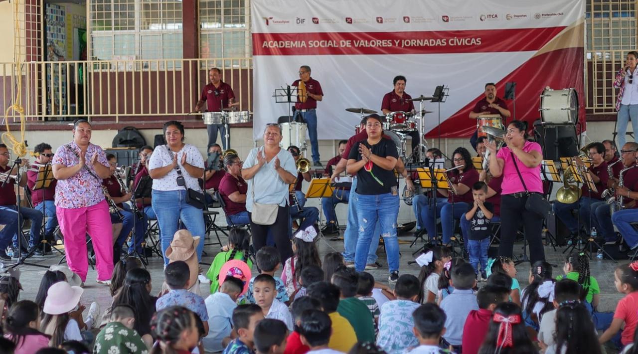Destacó la presencia de los integrantes de la Banda de Música del Gobierno del Estado, quienes motivaron gran alegría entre todos los asistentes mediante un mosaico musical de las diversas regiones de Tamaulipas, en el que sonaron el huapango, las polkas y el chotis, como una forma de preservar los valores y el folklore entre las nuevas generaciones, además de ejecutar melodías de personajes infantiles contemporáneos.