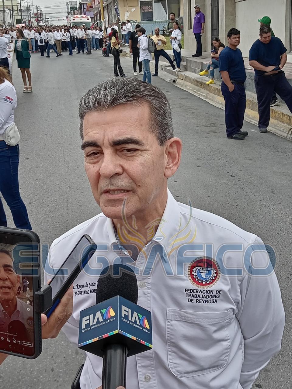 El tradicional desfile conmemorativo del Dia del Trabajo (1 de mayo) representa el refrendo de un sindicalismo que valores y principios por la emancipación de los derechos de los trabajadores, que agota todos los recursos disponibles para promover un clima de paz y estabilidad, como priva actualmente en Reynosa. Lo anterior fue expuesto por Reynaldo Garza Elizondo. Secretario General de la Federacion de Trabajadores de Reynosa.