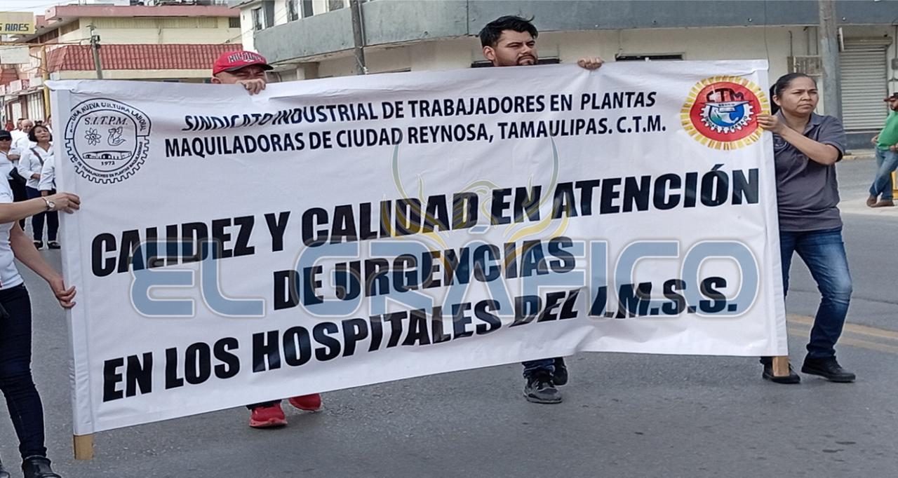 Variadas fueron las proclamas y demandas contenidas en las pancartas que los trabajadores exhibieron a su paso, durante la celebración del desfile del Dia del Trabajo en Reynosa.
