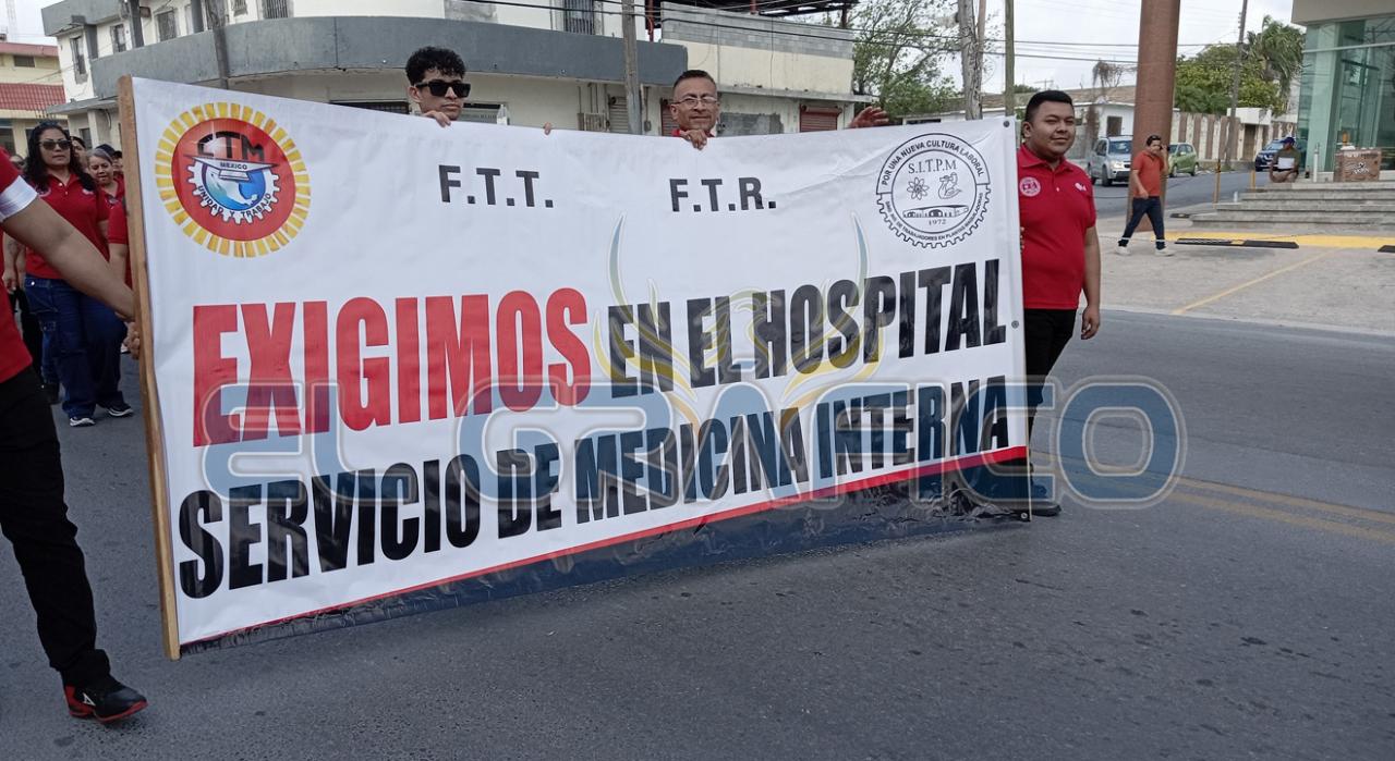 “Exigimos en el Hospital General 270, servicio de Medicina Interna”, se leía en una de las mantas. “Calidez y Calidad en los servicios de Hospitales del IMSS”, decía otra.