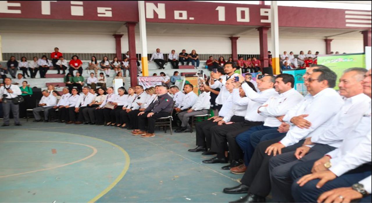 El presidium también estuvo integrado por el presidente municipal de Ciudad Madero, Erasmo González Robledo; Olegario Muñiz Cura, coordinador de la DGETI en Tamaulipas; Julio Martínez Bournes, director general del COTACyT; Saúl Cesáreo, enlace estatal de SEMS; Juan Dionisio Cruz, director del Instituto Tecnológico de Ciudad Madero, y la diputada Úrsula Salazar, entre otras autoridades.