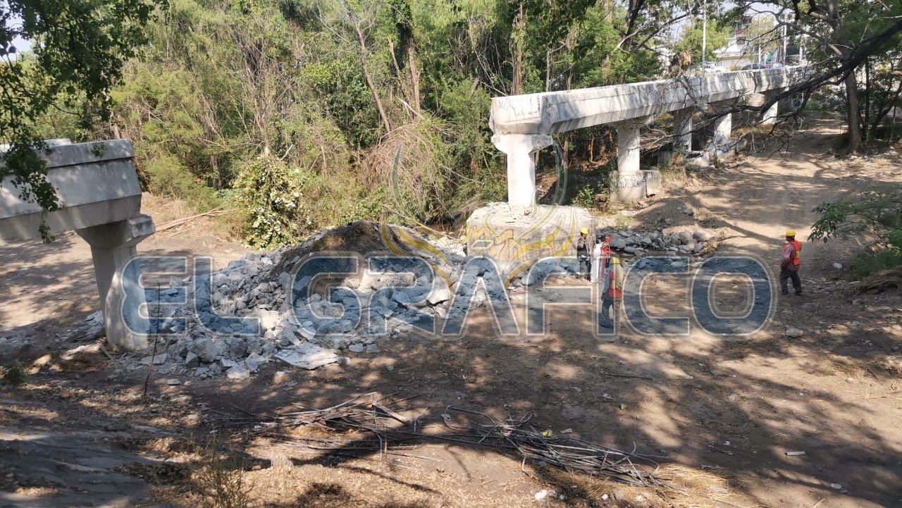 Tras varias semanas de estar cerrado el acceso, y después de llevar a cabo desde el pasado fin de semana diversos trabajos previos como el corte del concreto, hoy martes se tumbó un tramo de 17 metros del puente peatonal del 13 Bulevar Praxedis Balboa