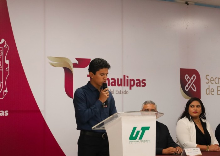 En representación de su generación, el joven Jesús Alejandro Zaleta Salinas, egresado de TSU en Química Área Industrial, agradeció al cuerpo docente por su acompañamiento durante la formación académica, así como a sus familias por el respaldo constante, factores que consideró clave para alcanzar sus metas profesionales.