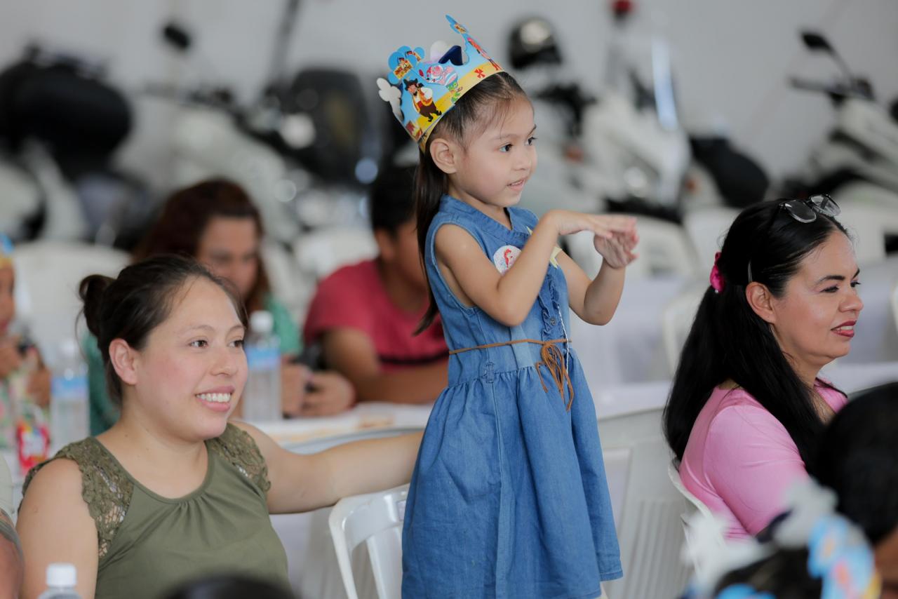 Durante el convivio también se celebró el Día del Niño, por lo que los chiquitines, disfrutaron de un divertido show de payasos, concursos y sorpresas.