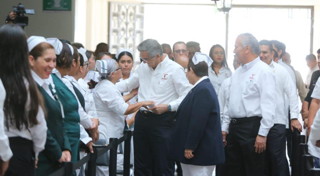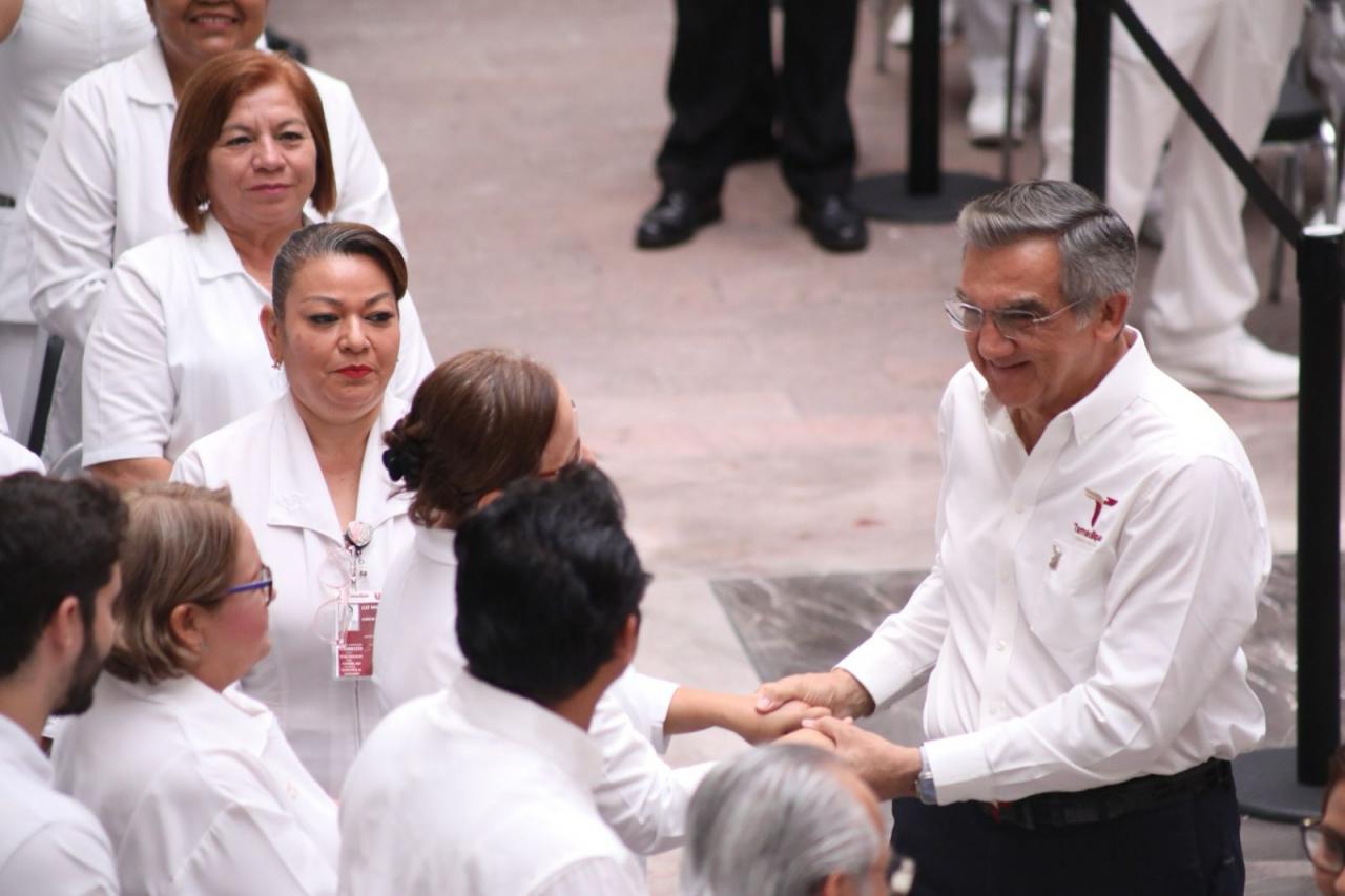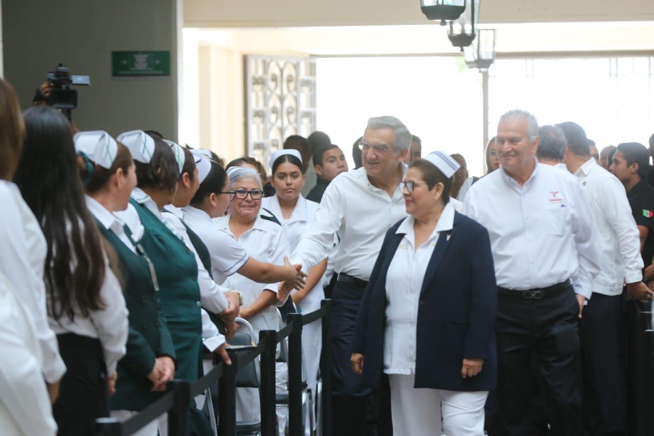 Al felicitar a las y los enfermeros, Hernández Navarro aseguró que, gracias a su esfuerzo diario, se han reconstruido servicios abandonados, se han erradicado innecesarias burocracias y se ha recuperado el carácter público de la salud. “Y en todo ese proceso, quienes ejercen la noble labor de la enfermería han estado ahí, al frente, sosteniendo la atención, organizando el cuidado, enseñando, previniendo y acompañando la lesión”, afirmó.