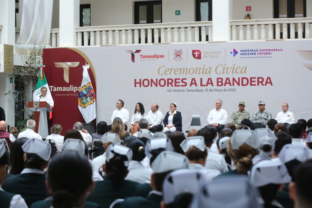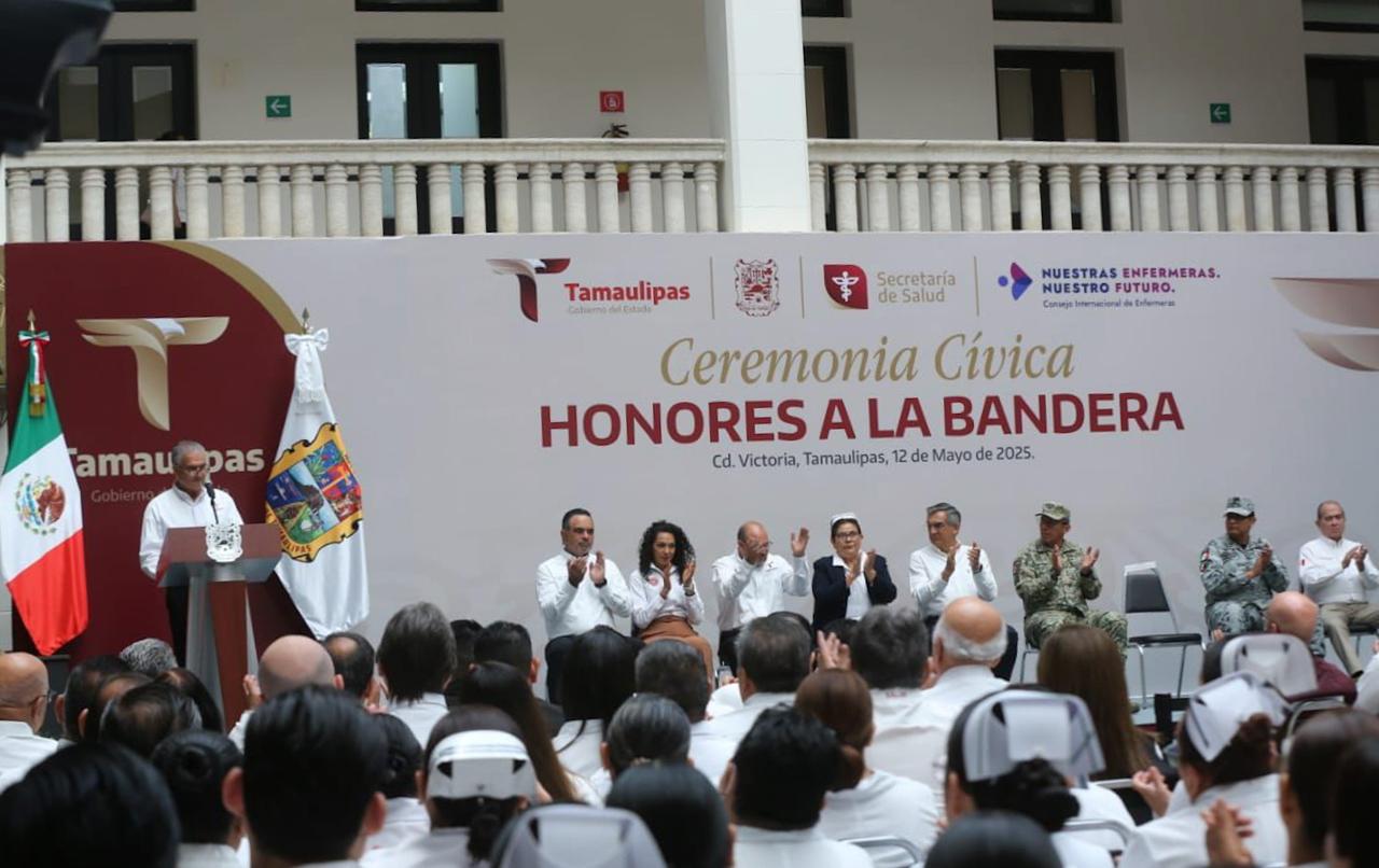 El secretario de Salud, Vicente Joel Hernández Navarro, destacó que, gracias a su visión profundamente humanista, el gobernador Américo Villarreal, desde el inicio de su administración, asumió un compromiso claro con la dignificación de la enfermería, no como una acción simbólica, sino con una decisión de justicia, de reconocimiento a su relevancia y de fortalecimiento del sistema de salud. Y gracias a esa convicción, Tamaulipas se ha convertido en la única entidad del país que ha creado una Subsecretaría de Enfermería encabezada por mujeres y hombres formados en el área clínica.