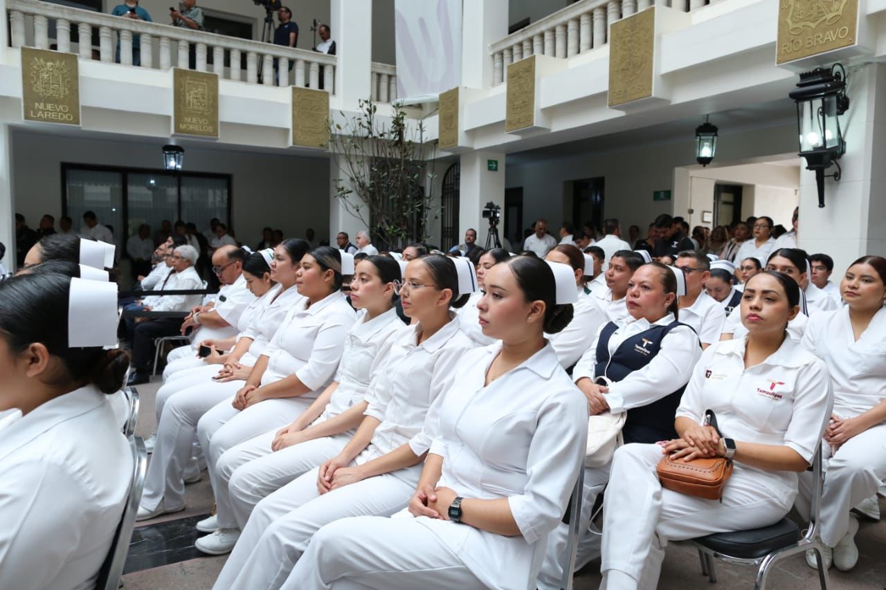 Agregó que en nuestro estado se están construyendo cimientos sólidos para escalar la calidad en los servicios de salud y bienestar del pueblo de Tamaulipas, y la enfermería ha madurado y experimentado un desarrollo vertiginoso con un nivel de licenciatura, pero también de acceso a diferentes posgrados y especialidades, y ahora al doctorado, lo que ha permitido tener un desarrollo muy importante para enfrentar los retos epidemiológicos actuales.