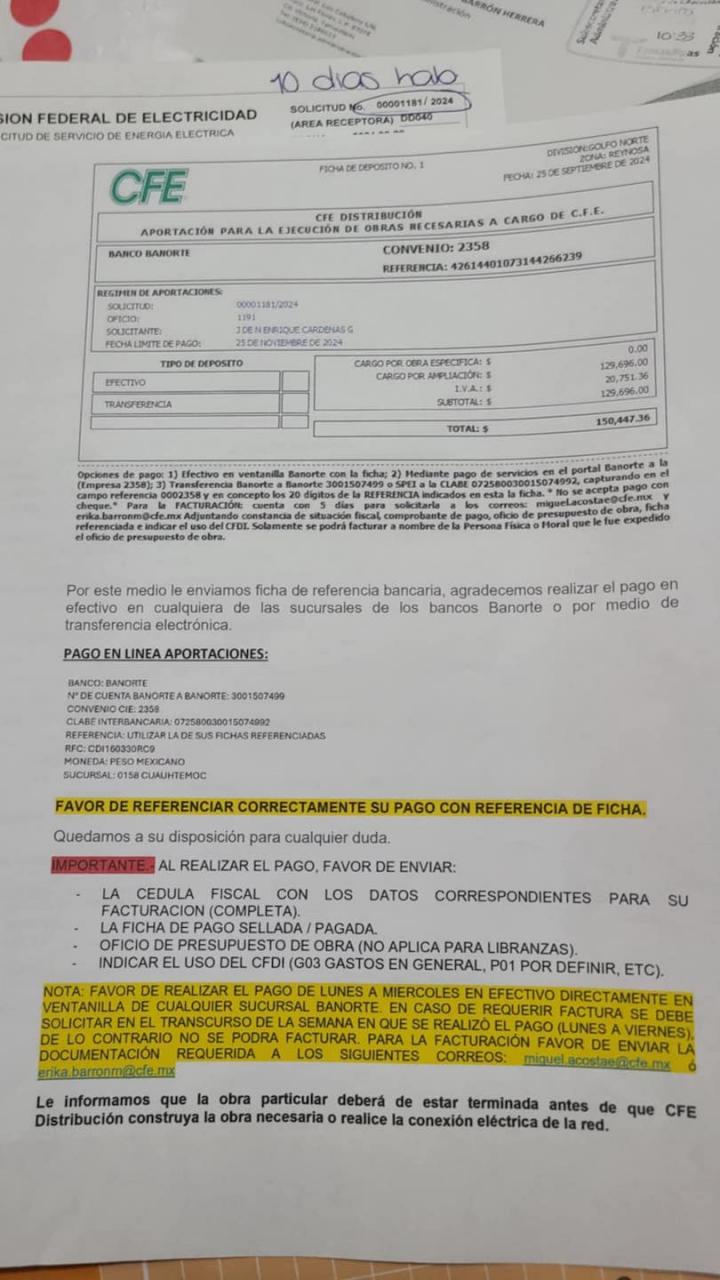 Tras varias fallas y averías en los medidores, por causa de sobrecargas de consumo de energía. La Comision Federal de Electricidad, tras un peritaje a inspección técnica, determino la necesidad de una sub-estación, misma que asciende a poco más de 150 mil pesos.