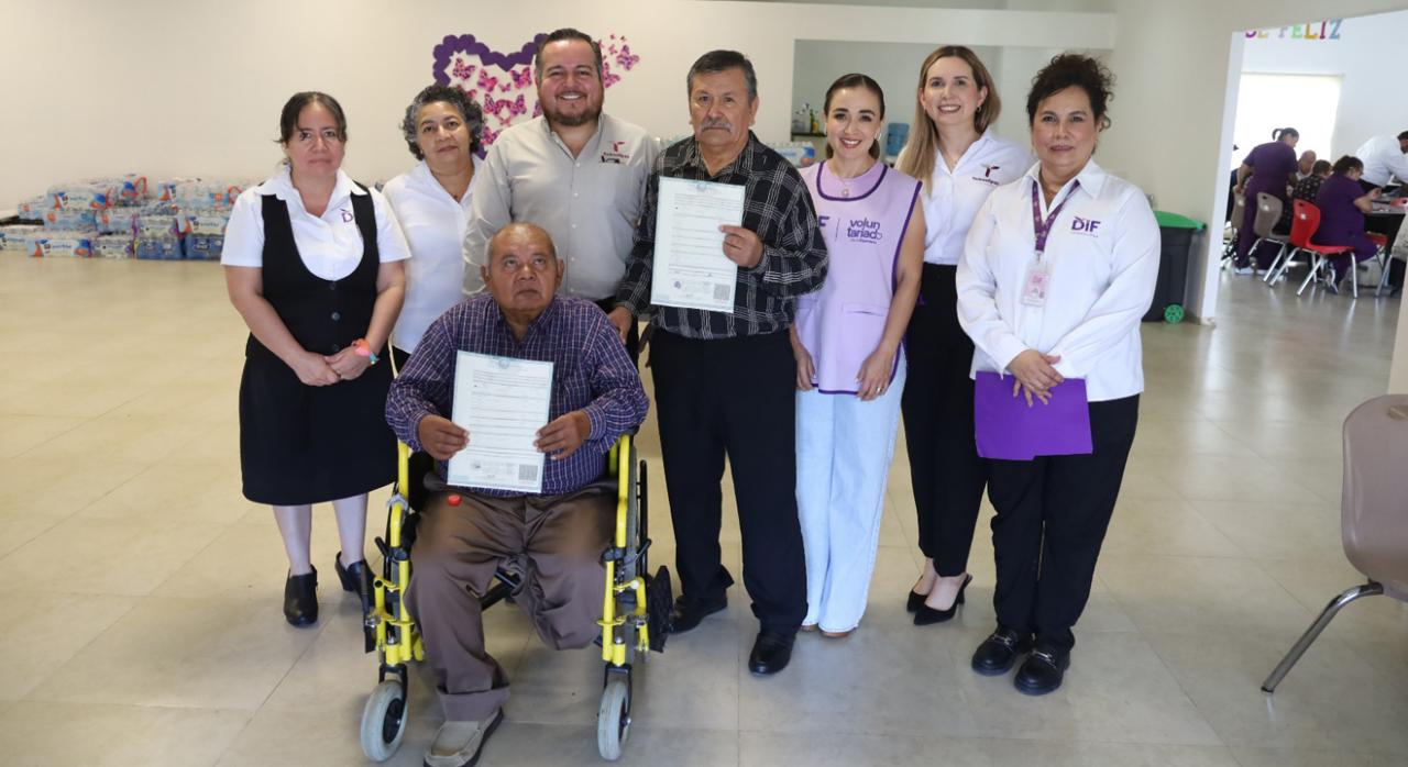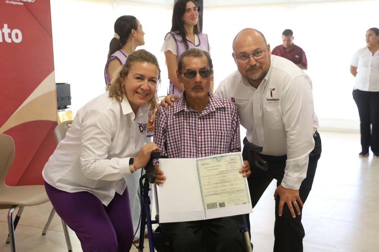 Ciudad Victoria, Tamaulipas.- Como parte de la estrategia impulsada por el gobernador del Estado, Américo Villarreal Anaya, y fortalecida por el compromiso de la presidenta del Sistema DIF Tamaulipas, doctora María Santiago de Villarreal, para asegurar que todas y todos los tamaulipecos cuenten con documentos de identidad que respalden sus derechos, el DIF estatal llevó a cabo la entrega de actas de nacimiento a adultos mayores en la Casa Hogar del Adulto Mayor.