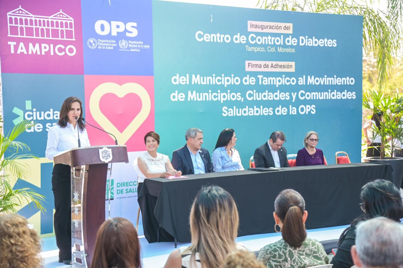 Durante el acto, efectuado en el Centro de Desarrollo Familiar de la colonia Morelos, la alcaldesa porteña, acompañada de la Presidenta del Sistema DIF municipal , Dra. Luz Adriana Villarreal Anaya, inauguró también el Primer Centro de Control de Diabetes en la historia de Tampico.