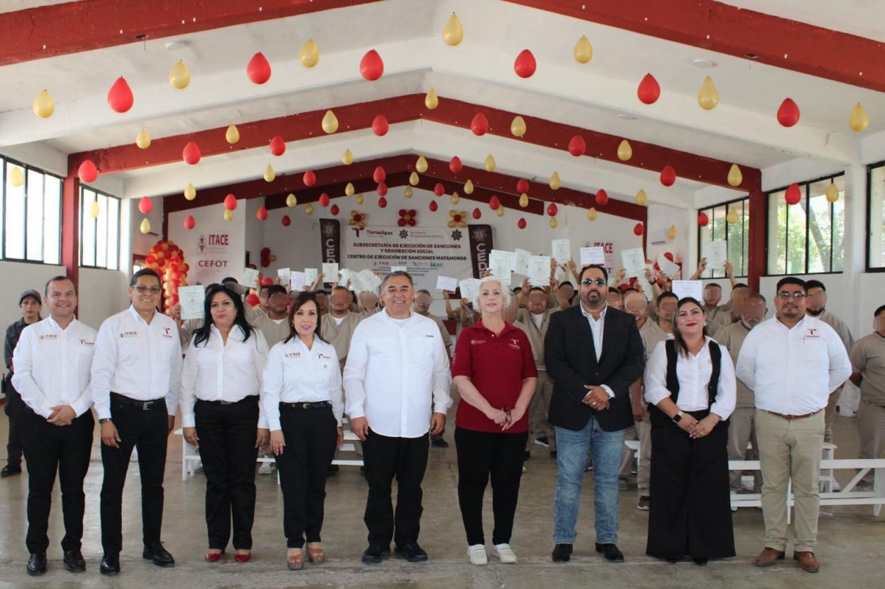 Matamoros, Tamaulipas.- Con el objetivo de impulsar la reinserción social efectiva y fortalecer las competencias laborales de las Personas Privadas de la Libertad (PPL), el Centro de Ejecución de Sanciones (CEDES) Matamoros, en coordinación con el Instituto Tamaulipeco de Capacitación para el Empleo (ITACE), llevó a cabo la ceremonia de entrega de Constancias de Capacitación para el Trabajo.