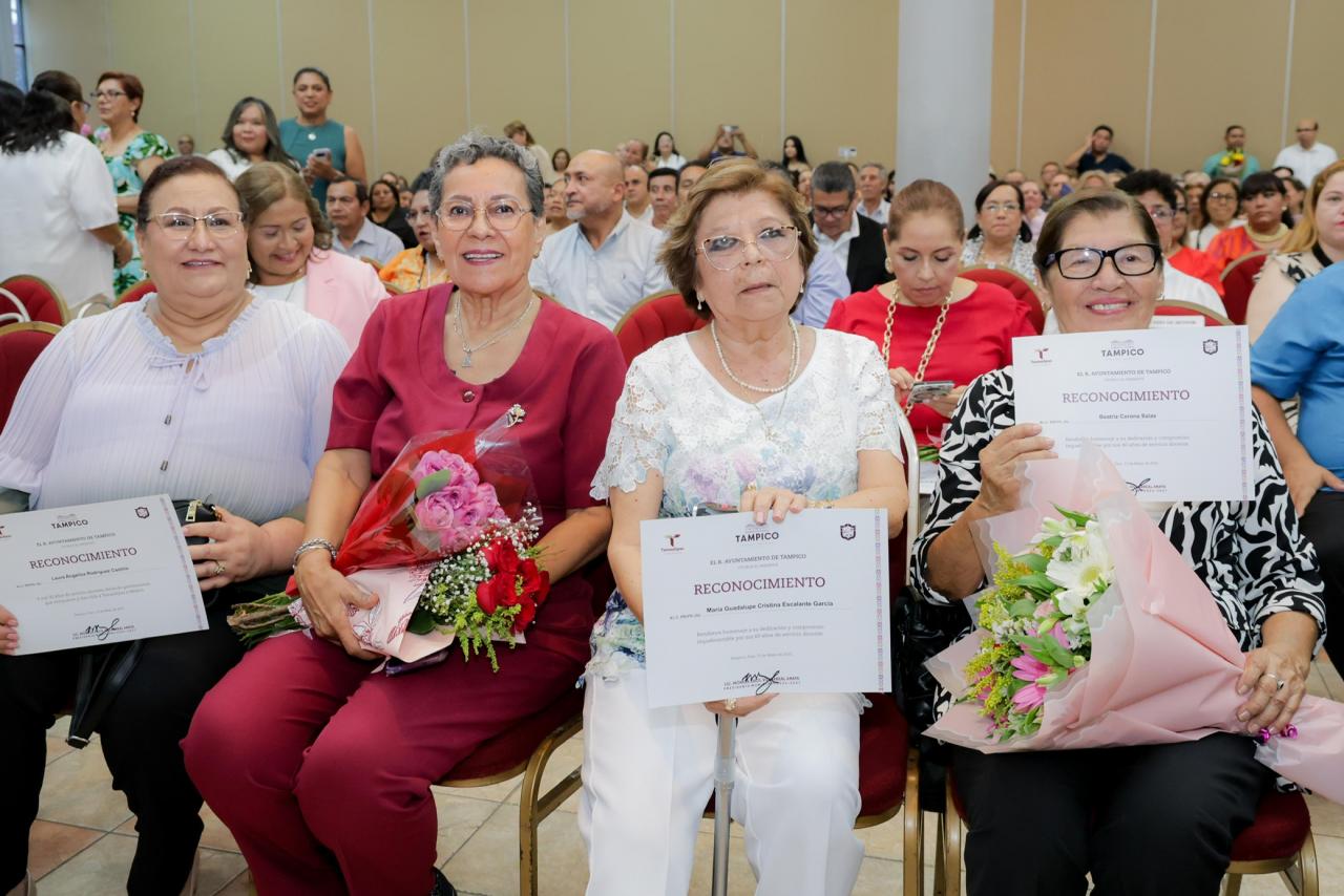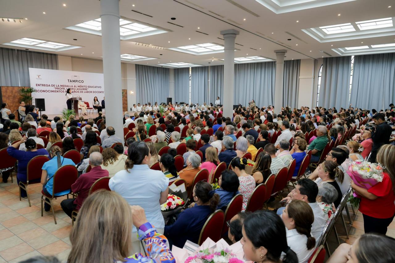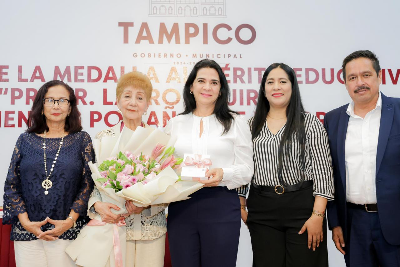 La Presidenta Municipal de Tampico Mónica Villarreal Anaya, encabezó la ceremonia de entrega de la medalla al mérito educativo "Lauro Aguirre" y reconocimientos a la labor magisterial con 25, 30, 40, 50 y 60 años de servicio docente.