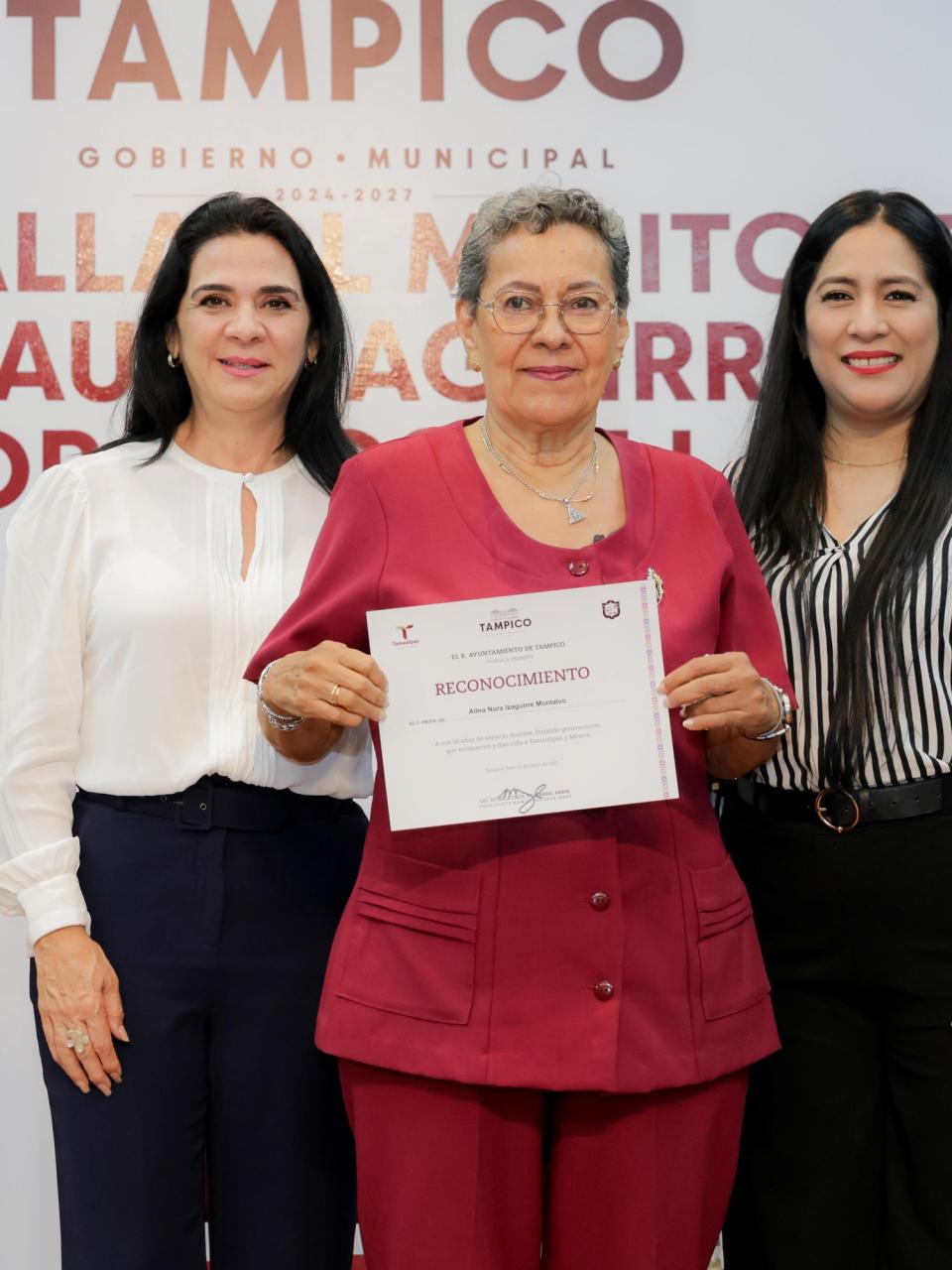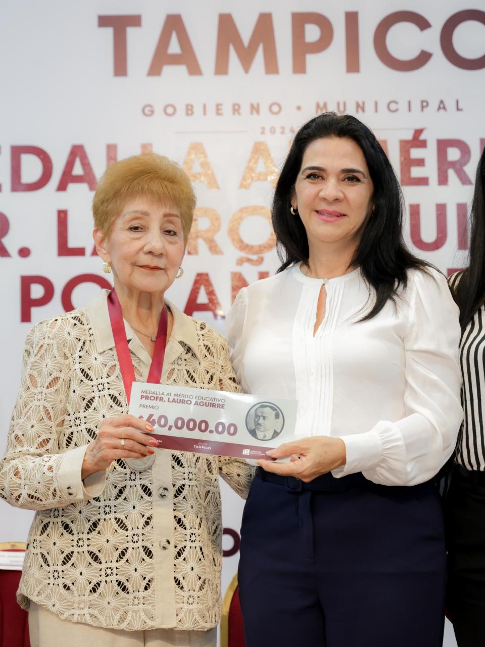 En este acto celebrado en la Casa de la Cultura de Tampico, la alcaldesa porteña entregó la presea a la Profesora María Isaura Acosta Hernández por su destacada trayectoria docente de más de 50 años en la formación académica de miles de estudiantes.