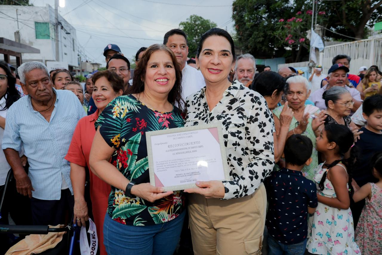 Finalmente, los residentes del sector otorgaron un reconocimiento a la Presidenta municipal Mónica Villarreal Anaya, por la rehabilitación de las citadas calles. <Se editó este mensaje.>