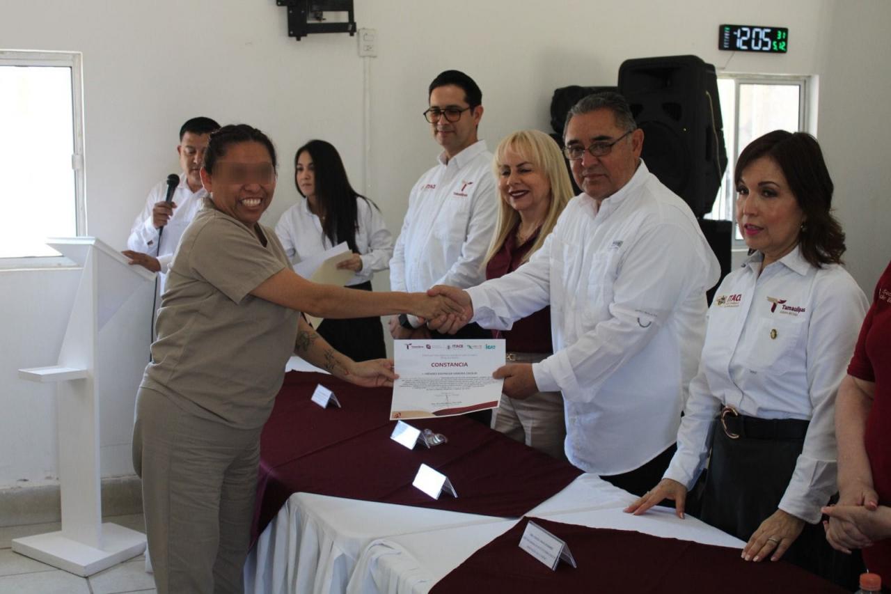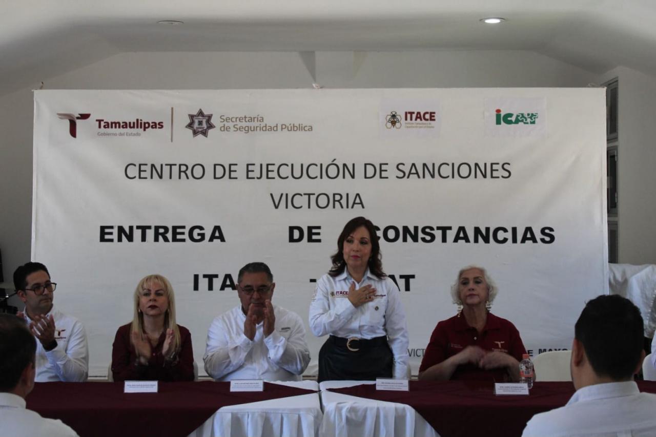 La ceremonia contó con la presencia del subsecretario de Ejecución de Sanciones y Reinserción Social, Juan Antonio Sánchez; Claudia Anaya Alvarado, directora general del ITACE; Sandra Luz Pedraza Anaya, en representación del secretario de Educación de Tamaulipas y Nora Hilda de los Reyes Vázquez, delegada de la SEP en el estado, así como personal administrativo del centro penitenciario.