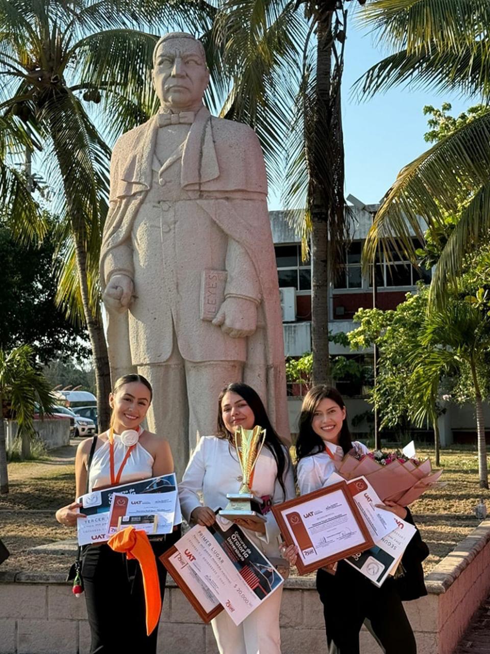 Los tres primeros lugares fueron ocupados por talentosas estudiantes de la Licenciatura en Derecho de la Facultad de Comercio, Administración y Ciencias Sociales (FCACS) de Nuevo Laredo: el primer lugar fue para Cynthia Nayeli Arriaga Vázquez; el segundo, para Melannie Dayan Olvera Rosales; y el tercero, para Mariana Rodríguez Méndez.