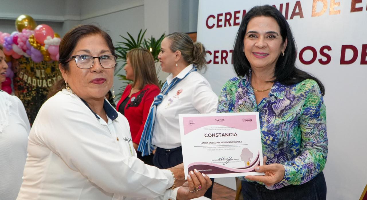 "Estas acciones son fundamentales para fortalecer la igualdad de género y brindar oportunidades de desarrollo personal y profesional a las mujeres tampiqueñas", enfatizó la primera autoridad del municipio.