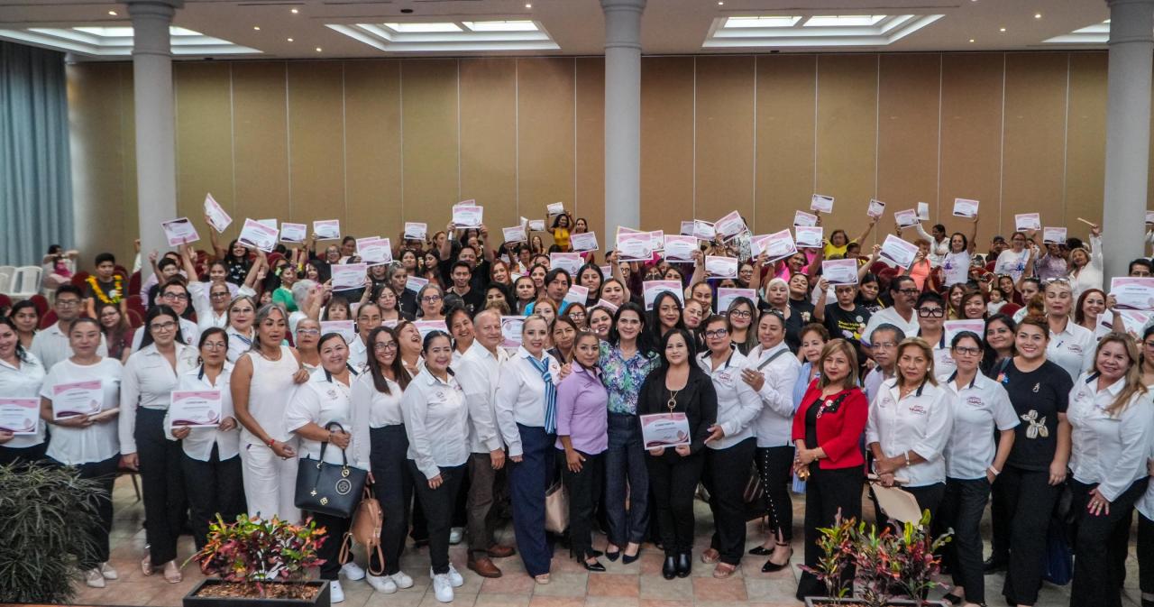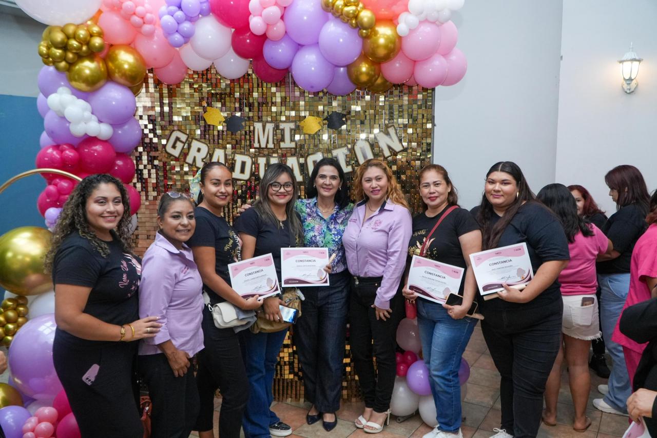 La Presidenta Municipal de Tampico, Mónica Villarreal Anaya, encabezó la ceremonia de entrega de constancias y certificados a las más de 400 participantes de los cursos y talleres que fueron impartidos en los módulos del Instituto de la Mujer.