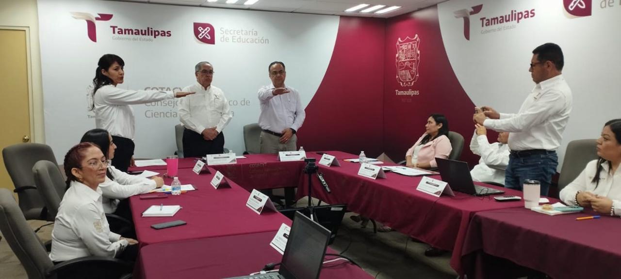 Indicó que durante la sesión también se tomó protesta a los nuevos integrantes del comité: al subsecretario de Educación Media Superior y Superior, Igor Crespo Solís, quien asistió en representación de Miguel Ángel Valdez García, secretario de Educación de Tamaulipas; y a Miriam Romero Ramírez, jefa del Departamento Jurídico y de Transparencia del COTACYT.