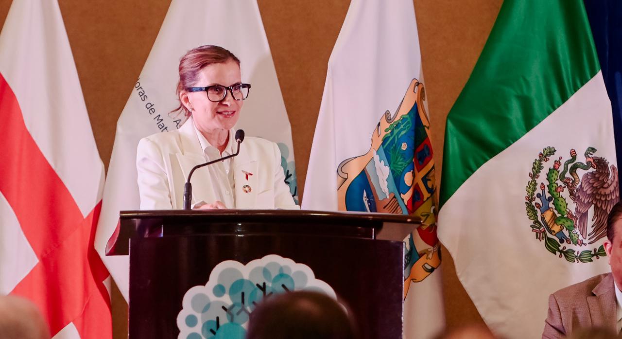 Durante su intervención, la titular de Economía reconoció a la Asociación de Maquiladoras de Matamoros por la realización de una edición más de este evento, que se ha consolidado como uno de los más importantes del norte del país en materia de integración productiva y dinamismo económico.