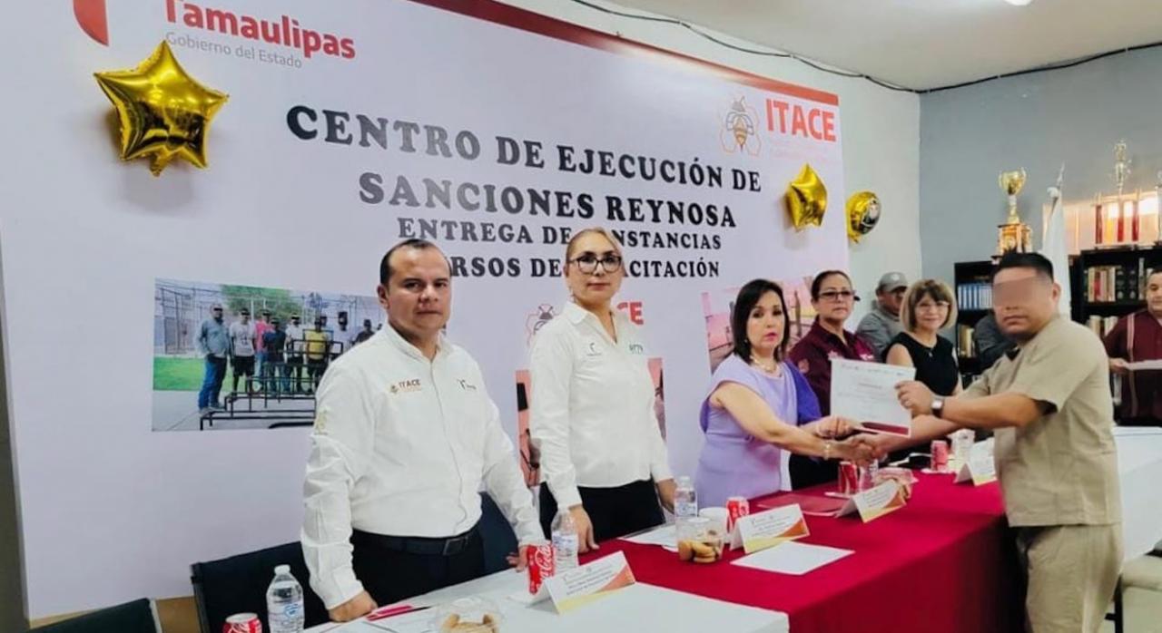 Reynosa, Tamaulipas.- Con una ceremonia formal de entrega de constancias, personas privadas de la libertad (PPLs) del Centro de Ejecución de Sanciones (CEDES) del municipio de Reynosa, acreditaron las habilidades laborales adquiridas a través del Instituto Tamaulipeco de Capacitación para el Empleo (ITACE).
