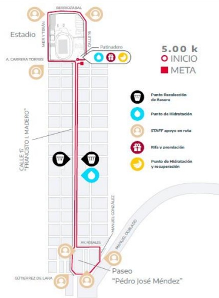 Las distancias establecidas son 5 kilómetros para mayores de 18 años y de 2.5 kilómetros para las niñas y niños y menores de 17 años. Cabe destacar, que a los primeros 800 corredores inscritos se les entregará un kit de número y playera conmemorativa; del 801 en adelante solo será número para la rifa.