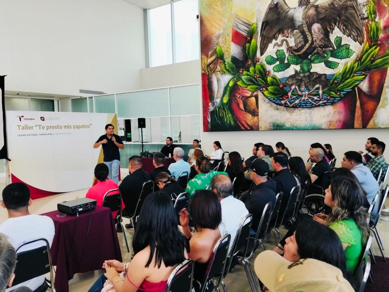 Ciudad Victoria, Tamaulipas. - Con el firme objetivo de crear conciencia en su entorno laboral y social, personal de la Secretaría de Obras Públicas (SOP) participa en el taller denominado “Te presto mis zapatos” el cual es promovido por la Universidad Autónoma de Tamaulipas a través de su Dirección de Humanismo Social.