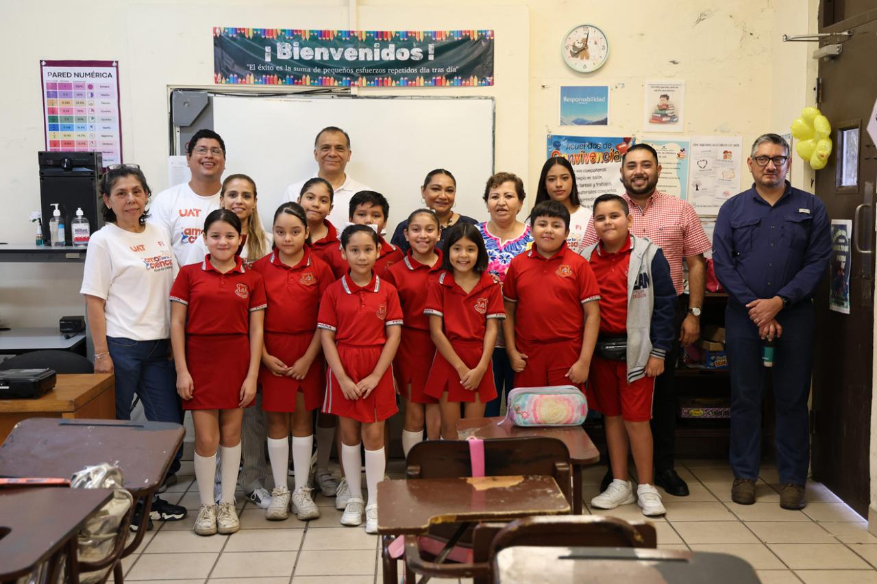 Con el firme compromiso de impulsar vocaciones tempranas en las áreas de ciencia, humanidades y tecnología, la Universidad Autónoma de Tamaulipas (UAT), a través de la Secretaría de Investigación y Posgrado, llevó a cabo la segunda sesión del Club de Ciencias, mediante una jornada de divulgación científica desarrollada de manera simultánea en escuelas de educación básica de Ciudad Victoria, Tampico y Ciudad Madero.