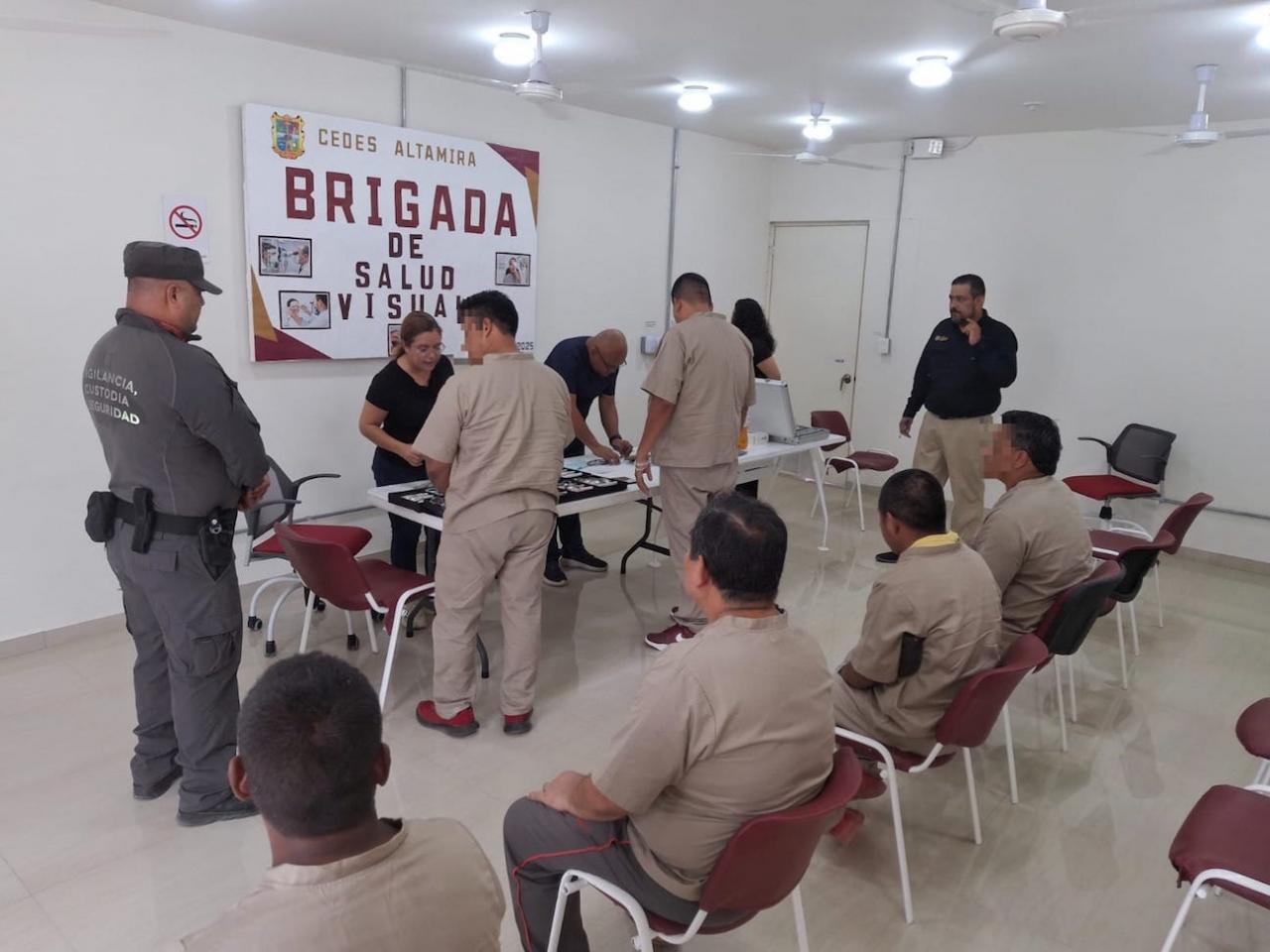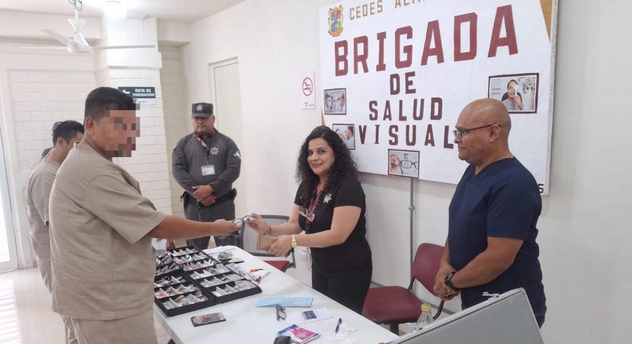 Altamira, Tamaulipas.- Personas Privadas de la Libertad (PPLs) del Centro de Ejecución de Sanciones (CEDES) Altamira fueron beneficiadas con la entrega gratuita de lentes por parte de la Clínica Oftalmológica ABC.