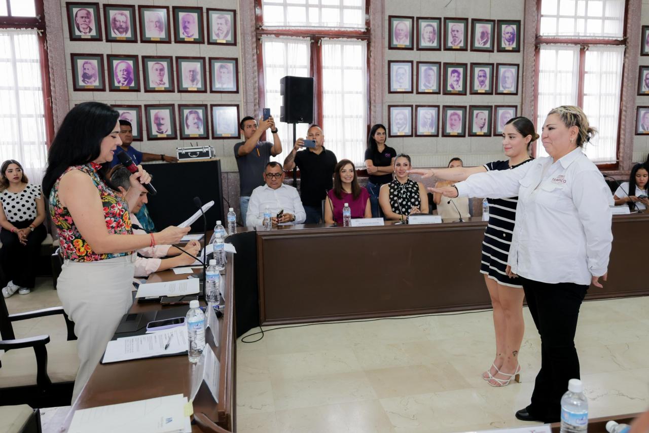 En el acto, efectuado en la Sala de Cabildo, la alcaldesa porteña estuvo acompañada por el Secretario General del Ayuntamiento, Carlos García Porres; y la Directora de Prevención del Delito, Libby Zacil Adame Estrada.