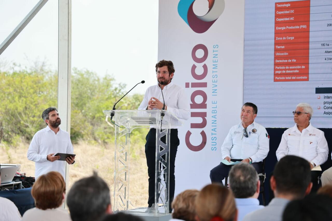 En representación del secretario Walter Julián Ángel Jiménez, el subsecretario de Electricidad y Energías Renovables, Roberto Manuel Rendón junto al presidente de Altamira, Armando Martínez Manríquez y José Antonio Soro, director de Desarrollo de Cubico en México, dieron inicio a la torre que recolectará datos esenciales de irradiancia solar y condiciones meteorológicas, lo que permitirá a Cubico optimizar el diseño y el rendimiento del proyecto.