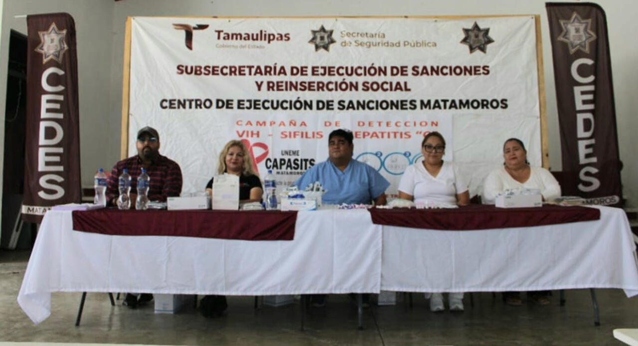 Matamoros, Tamaulipas.- Con la finalidad de detectar y atender Infecciones y Enfermedades de Transmisión Sexual (ITS y ETS), se llevó a cabo una campaña para la detección de Virus de Inmunodeficiencia Humana (VIH), hepatitis C y sífilis en el Centro de Ejecución de Sanciones (CEDES) del municipio de Matamoros.