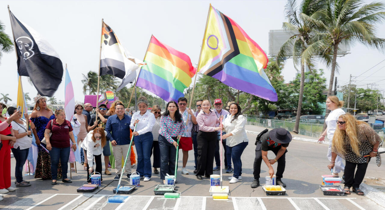 Con orgullo y compromiso, el Gobierno Municipal de Tampico, encabezado por la alcaldesa Mónica Villarreal Anaya, llevó a cabo a través de la Secretaría de Cultura, la pinta del cruce peatonal en Bulevard Fidel Velázquez frente a la Rueda de la Fortuna, en un acto simbólico de inclusión, respeto y visibilidad para la comunidad LGBTIQ+.