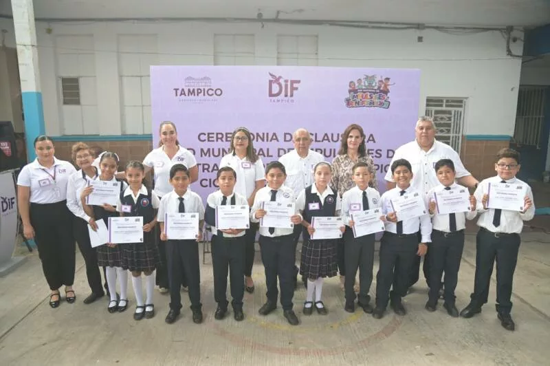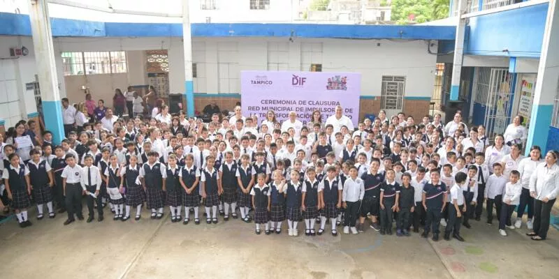 La Presidenta del Sistema DIF Tampico, Dra. Luz Adriana Villarreal Anaya, encabezó la ceremonia de clausura de la Red de Niños Impulsores de la Transformación 2025, efectuada en la escuela primaria “Tampico” de la zona centro, cuyo propósito es el difundir los derechos de los niños, niñas y adolescentes.