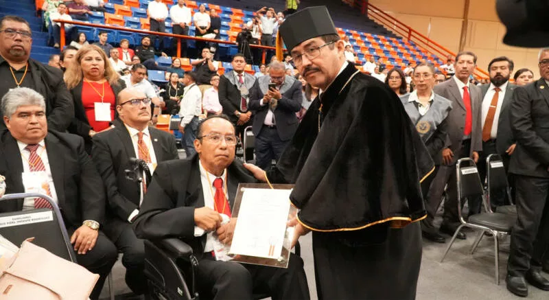 También se rindió homenaje póstumo al Dr. Juan Plutarco Arcos Martínez, de la Facultad de Derecho y Ciencias Sociales Victoria, por 30 años de destacada trayectoria. Fue docente, tutor y figura clave en la transformación del sistema judicial en Tamaulipas. El rector le hizo entrega de este reconocimiento a sus familiares, resaltando que su legado académico y humano seguirá presente en la Universidad.
