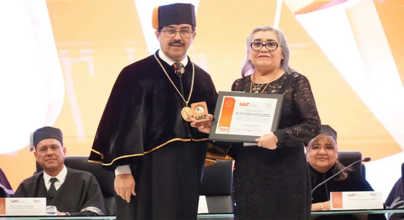 Asimismo, hizo un recuento de este acto, el cual, desde 2022, se realiza bajo un formato institucional acordado con el Sindicato Único de Trabajadores Académicos de la UAT (SUTAUAT), mediante el cual se entregan diplomas, medallas y estímulos económicos como reconocimiento a su labor docente.