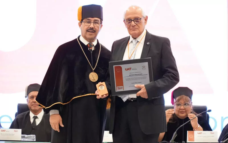 En su mensaje, el rector expresó su gratitud y admiración hacia quienes han dedicado su vida a la docencia con entrega, vocación y compromiso, y subrayó que la UAT se fortalece cada día gracias al espíritu y la perseverancia de su cuerpo académico, cuya huella trasciende las aulas.