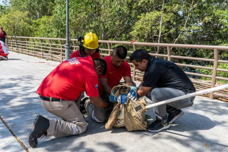 “Vivimos en una zona donde convivimos con el hábitat de los cocodrilos, entonces debemos de estar preparados ante cualquier situación que se presente con alguno de los saurios. El objetivo de este simulacro fue fortalecer la coordinación y preparación de los equipos de respuesta para brindar atención integral y segura a las personas afectadas en situaciones de interacción humano-cocodrilo”, puntualizó