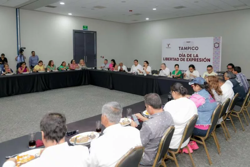 La Presidenta Municipal, Mónica Villarreal Anaya, sostuvo un encuentro con los representantes de los medios de comunicación por motivo del Día de la Libertad de Expresión, en el que destacó la importancia de la labor que realizan diariamente en el municipio.