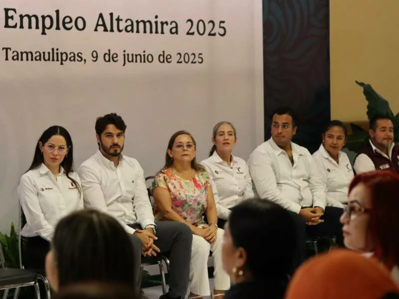 Acompañaron al secretario en esta jornada de impulso al empleo: Carolina Iveth Martínez Molano, subsecretaria de Empleo y Previsión Social; Rosa Irma Luque, presidenta del Sistema DIF Altamira; Marcia Benavides Villafranca, directora general del Instituto de la Mujer Tamaulipas y Mariana Álvarez Quero, subsecretaria para la Pequeña y Mediana Empresa.