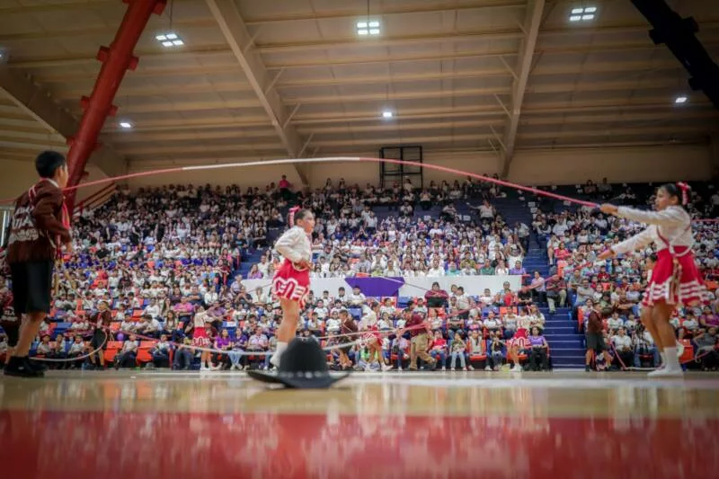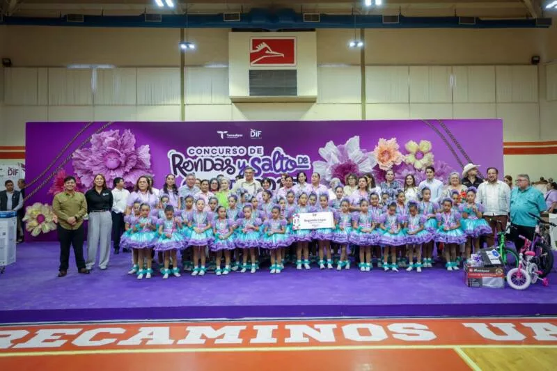 Ciudad Victoria, Tamaulipas. El gobernador Américo Villarreal Anaya y la presidenta del Sistema DIF Tamaulipas, la doctora María de Villarreal, premiaron a las y los ganadores de la final estatal del Concurso de Rondas Infantiles y Salto de Cuerda 2025, evento que se desarrolló en las instalaciones del Gimnasio Multidisciplinario de la UAT en esta capital, con la participación de alumnos de escuelas de las regiones norte, centro y sur del estado.