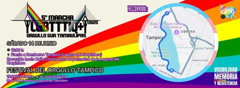 La marcha dará inicio a las 16:00 horas frente a Bomberos de Tampico y recorrerá la calle Colón sobre el perímetro de la Laguna del Carpintero. A las 19:00 horas, se celebrará el Festival del Orgullo en la Plaza Laguna, con la participación de Ximena Castellanos, reina de la marcha, y la influencer Kimberly Irene como invitada especial.